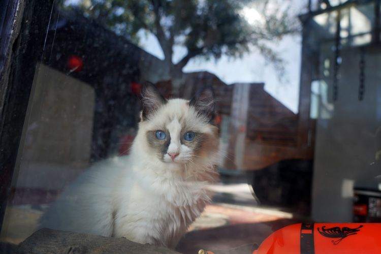 11月4日,德必天坛WE园区,一只猫审视着窗外来来往往的人群。