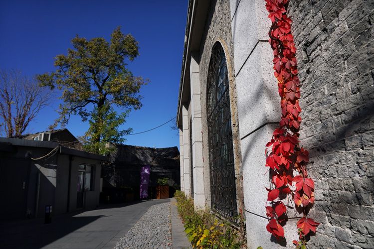 11月4日,德必天坛WE园区,年代感十足的建筑墙壁上攀附着红叶。