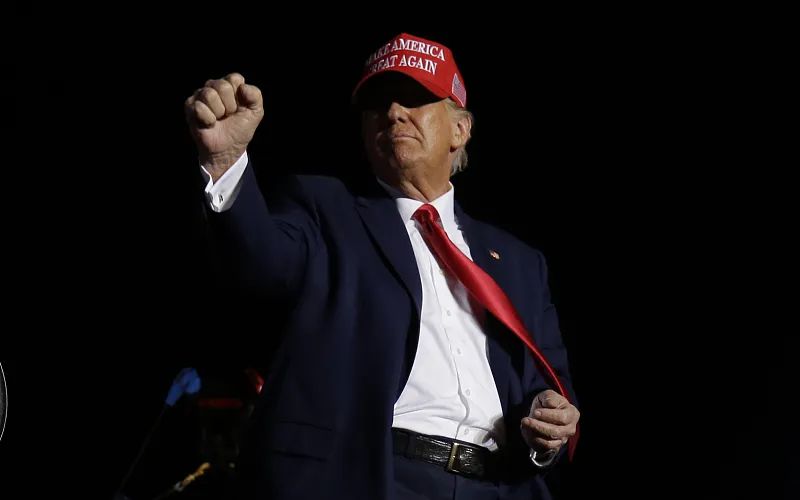 当地时间2022年11月5日,美国宾夕法尼亚州,特朗普在选举集会结束时向人群示意。图/视觉中国