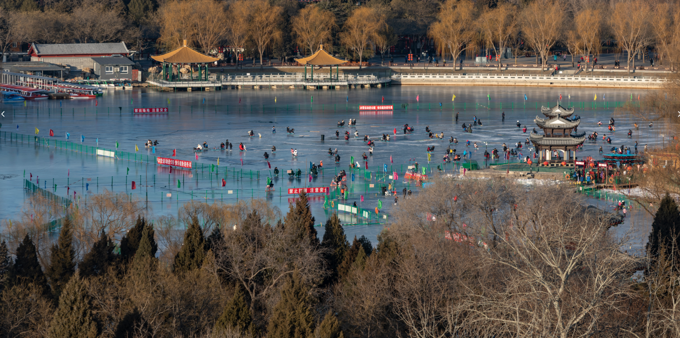 陶然亭公园内有一个大湖,湖边绿草如茵,调皮的小鱼们在水里游来游去,偶尔跃出水面荡漾起一圈圈涟漪,欢快的野鸭轻轻地浮在水面,成群的鸳鸯在湖里游泳,平静的水面泛起层层波纹,人们一边在碧波荡漾的湖水中尽情地划船嬉戏,一边欣赏着湖里的鱼儿、鸭子,心旷神怡。傍晚时分,落日的余晖洒在湖面上,像是给湖面披上了一层金色的面纱,把湖装扮得美轮美奂。即使是寒风刺骨的冬天,湖面结冰了,来湖里游玩的人仍然络绎不绝,大人、小孩在湖面上滑冰、玩雪,玩起各种冰雪节游乐项目,不亦乐乎。