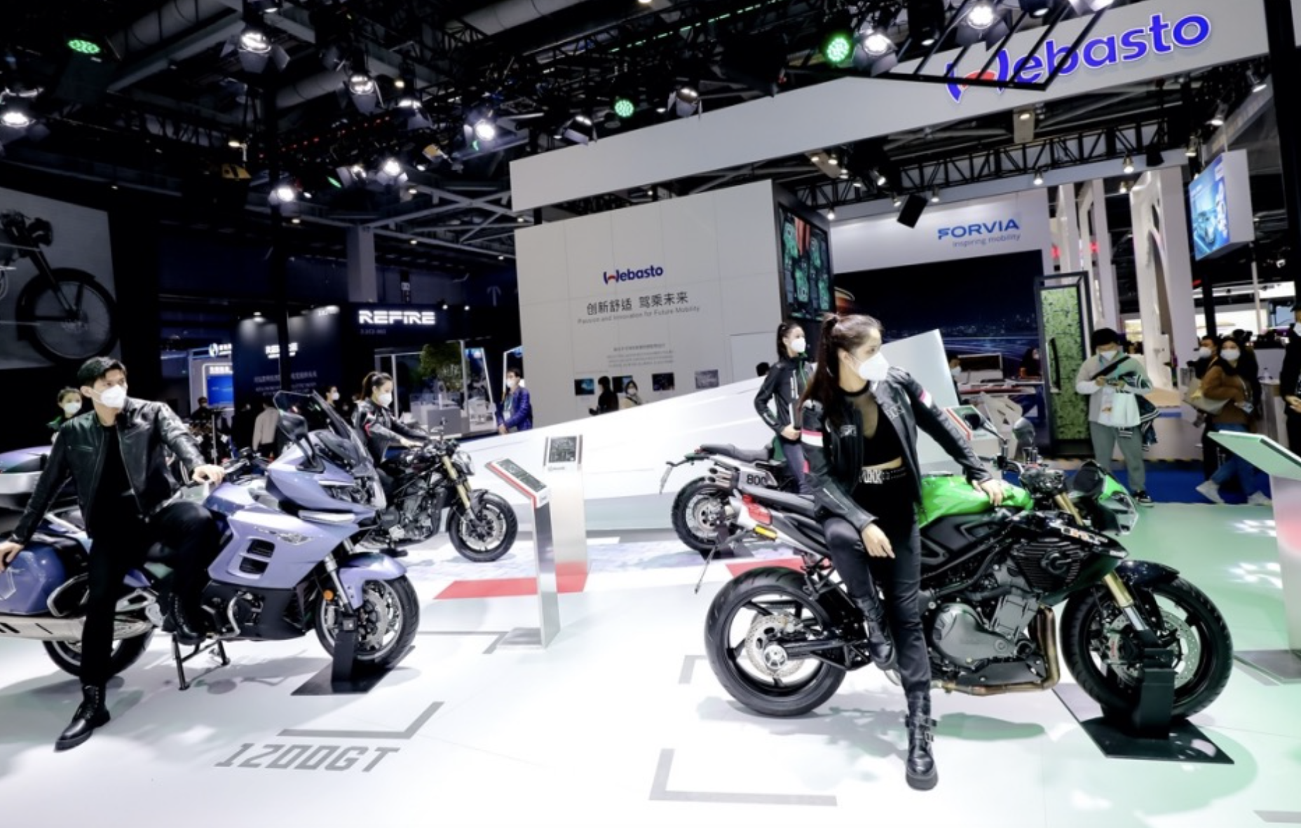 不仅是汽车,就连摩托车都谈起了减碳。本次进博会上,钱江摩托与皮衣皮裤的骑手们首次出现在了展台上。