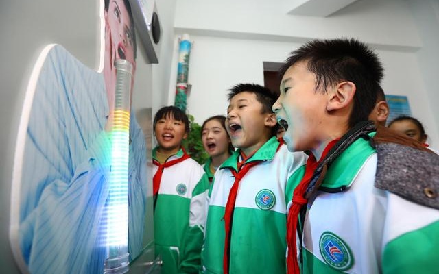 ▲安徽省淮北市的小学生在相山区未成年人心理健康辅导站宣泄室体验呐喊宣泄。图/新华社
