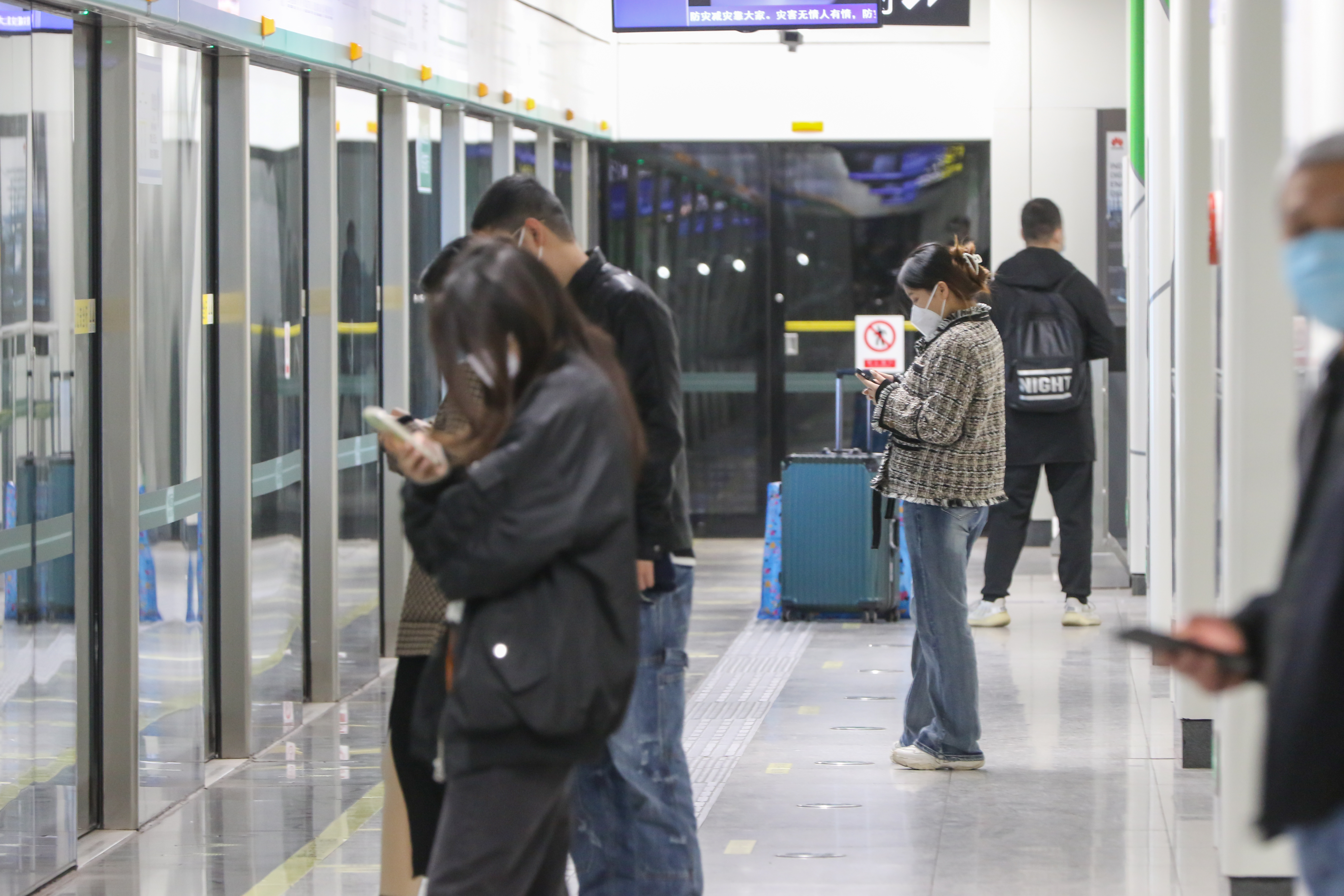 11月13日,河南郑州,市民乘坐地铁出行。自11月14日起,郑州地铁已有5条线路中的62座车站恢复正常运营。图/IC photo