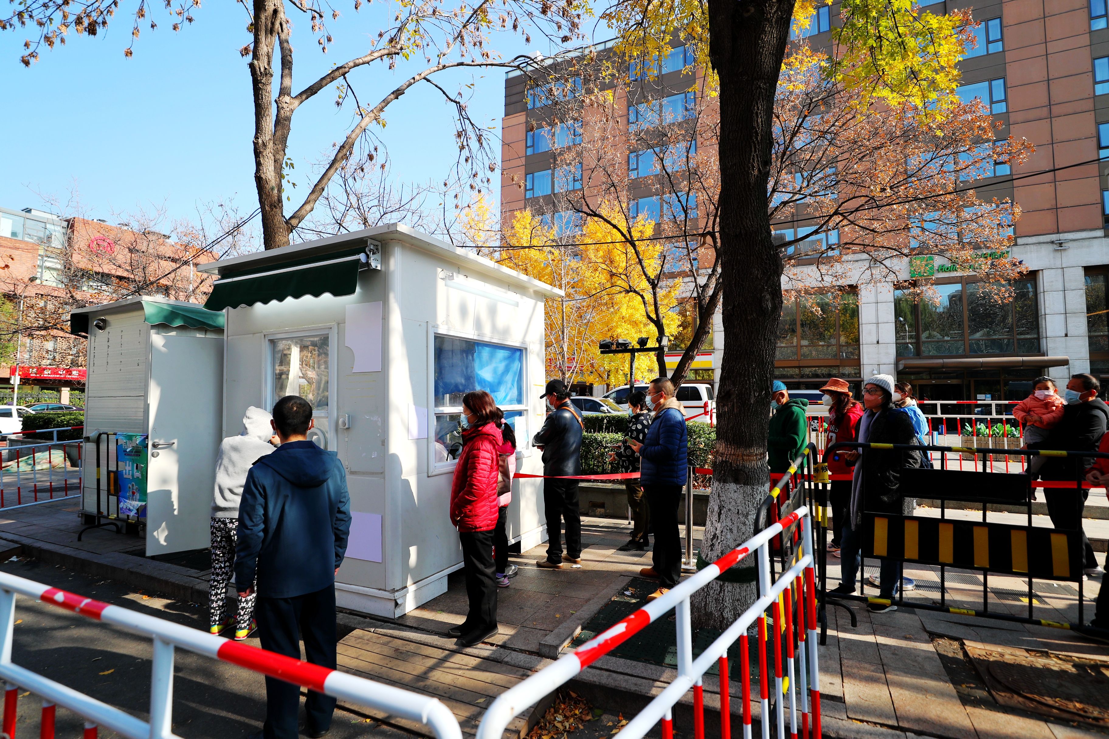 11月14日,北京西城,天桥街道一处核酸检测采样点,居民有序排队进行检测。牛云岗/IC photo
