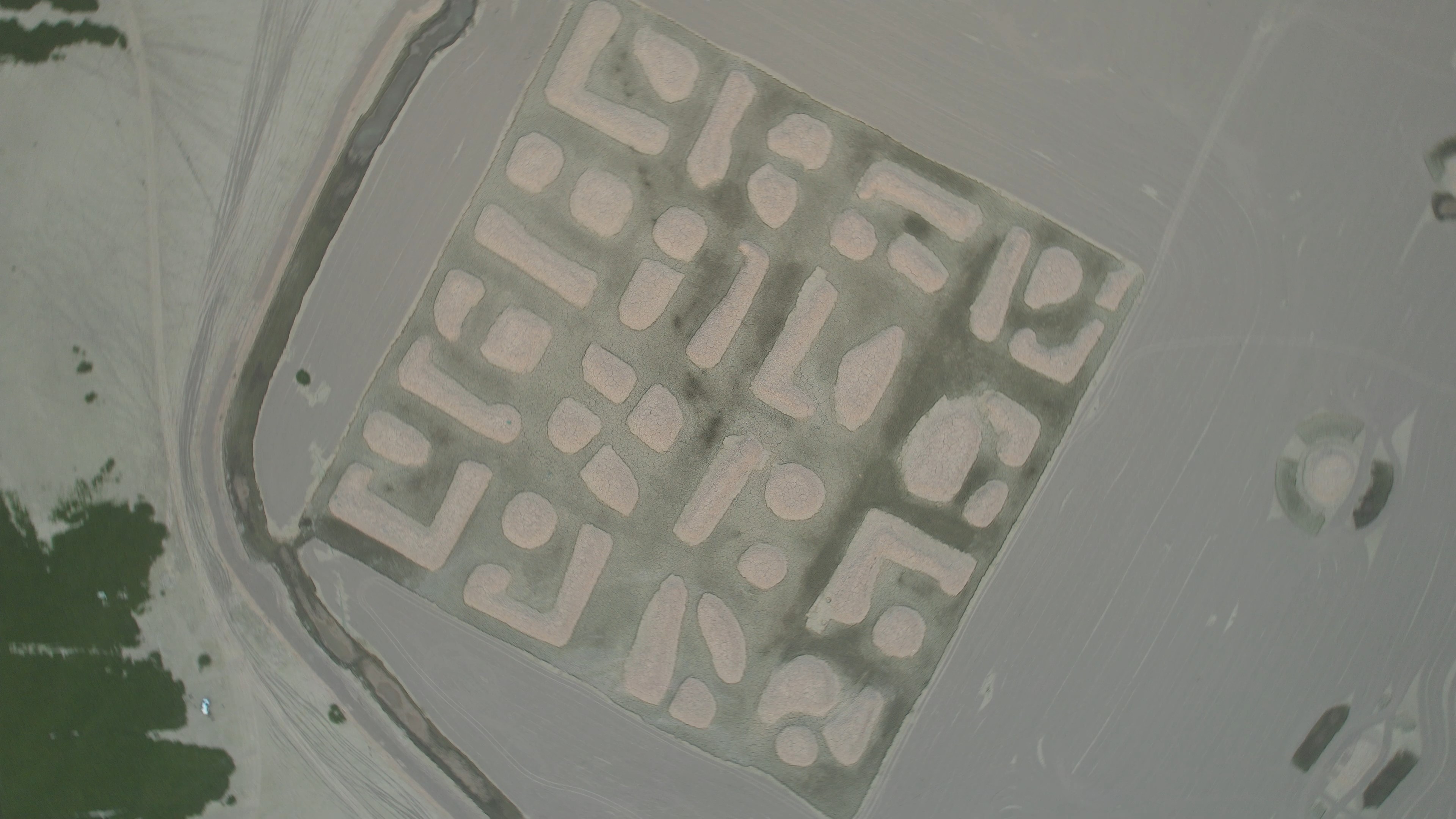 “整个画面很壮观,每一个图案足有网球场一般大小。看上去是个正方形,正方形里还有类似文字的特别图案。”杨新伟说,同行的朋友把拍摄到的视频片段放在了社交媒体平台,没想到点击率飞快蹿升。有的网友怀疑是古迹遗址或是古墓,有的网友则想起了“河图洛书”。