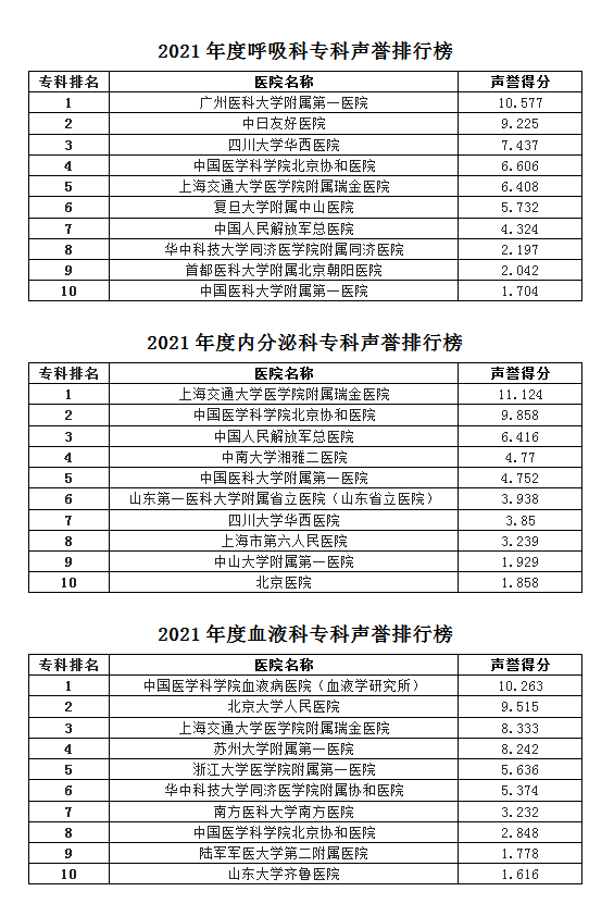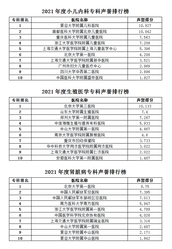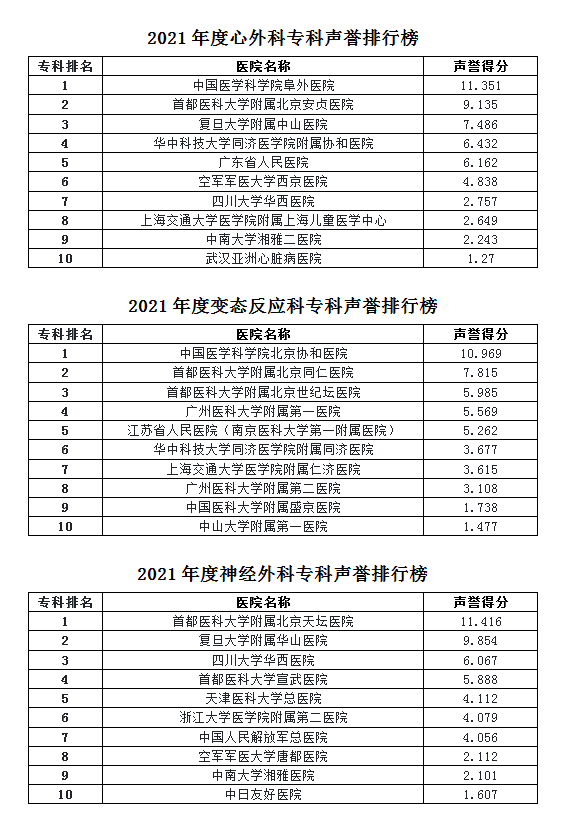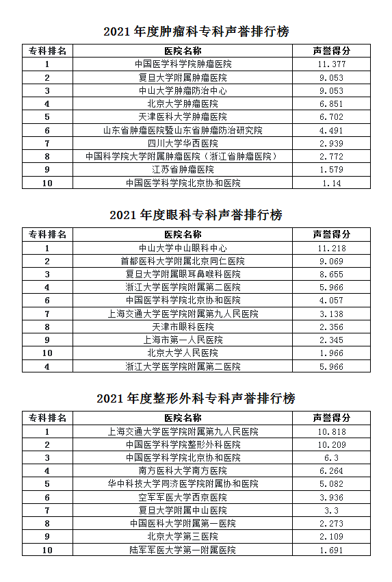 一旦生病,人们都希望去最好的医院找最好的医生。同样是三甲医院,哪个专科最擅长?高危孕产妇,哪家医院最放心?过敏如此严重,哪家医院治疗最拿手?心脏出现问题,哪家医院手术最值得信赖?11月20日,“复旦版”《2021年度中国医院综合排行榜》和《2021年度中国医院专科声誉排行榜》发布。其中,专科声誉排行榜中,共有42个专科榜单(前10名),包括重症医学、肿瘤科、整形外科、眼科、血液科等。