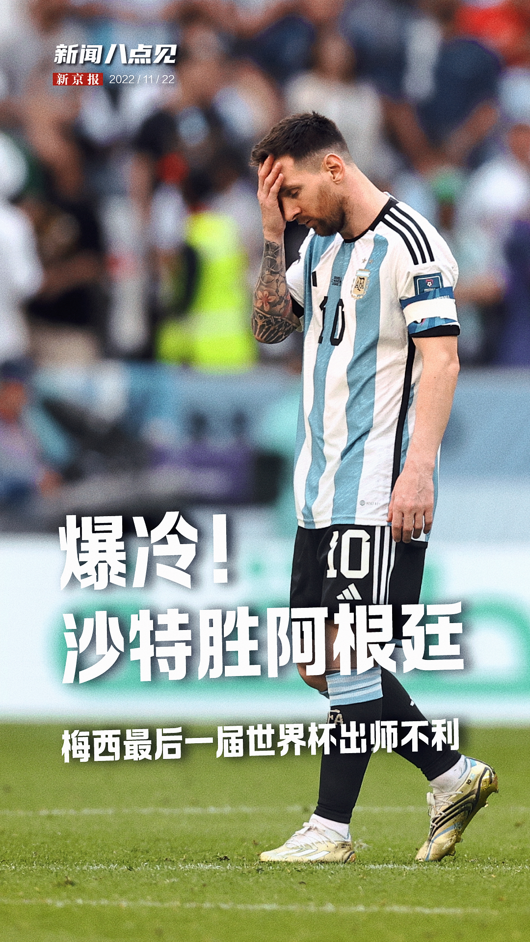 11月22日晚,2022年卡塔尔世界杯继续进行。在卢赛尔体育场进行的一场C组焦点战中,梅西领衔的阿根廷对阵亚洲球队沙特阿拉伯。梅西点球命中为球队首开纪录,但顶住压力的沙特在下半场实现逆转,最终以2比1爆冷赢球。沙特的这场胜利也是亚洲球队在本届世界杯的首胜。