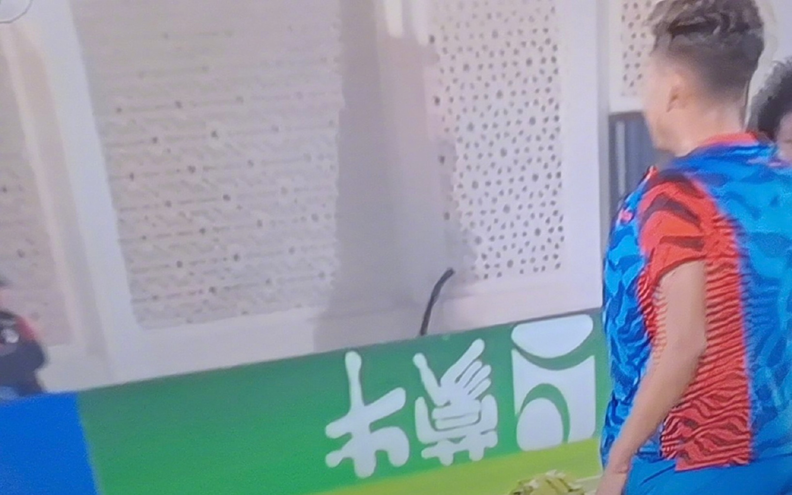 球场围挡上的LOGO颠倒了。 蒙牛乳业微博截图