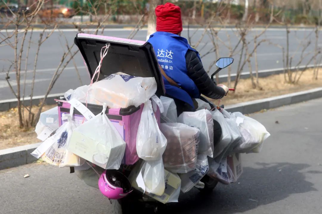 饿了么骑手霍诚也同样有所察觉。以前一天只有一两单超市外卖,现在几乎全都是超市的单。生鲜超市外卖都用大塑料袋装,原本可以放十几个餐盒的外卖箱,两大袋超市用品就塞满了。