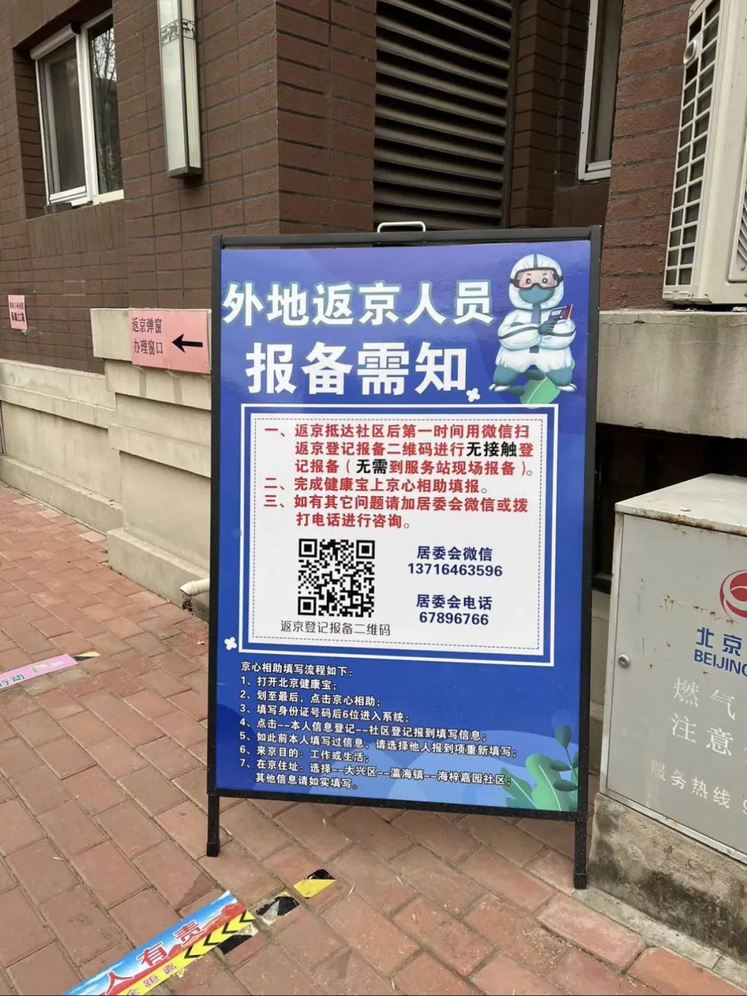 在大兴区瀛海镇海梓嘉园社区居委会的入口处,记者注意到,除了日常普通业务的办理通道,社区还单独开辟了一条专门的业务通道和窗口,为需要进行返京报备或者健康宝“弹窗”的居民提供相关服务。