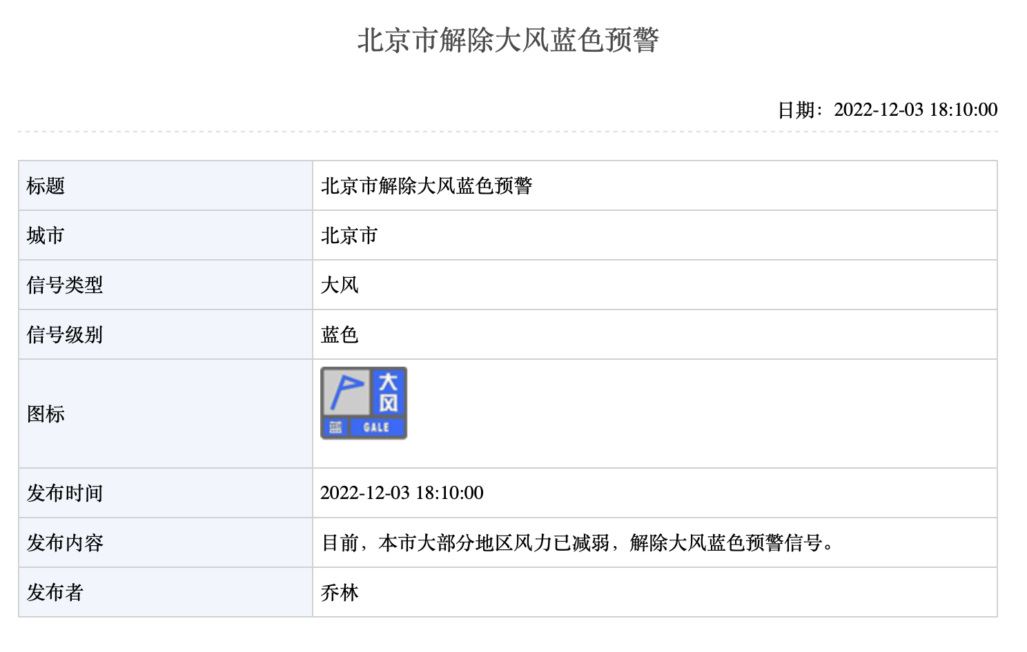 北京市解除大风蓝色预警