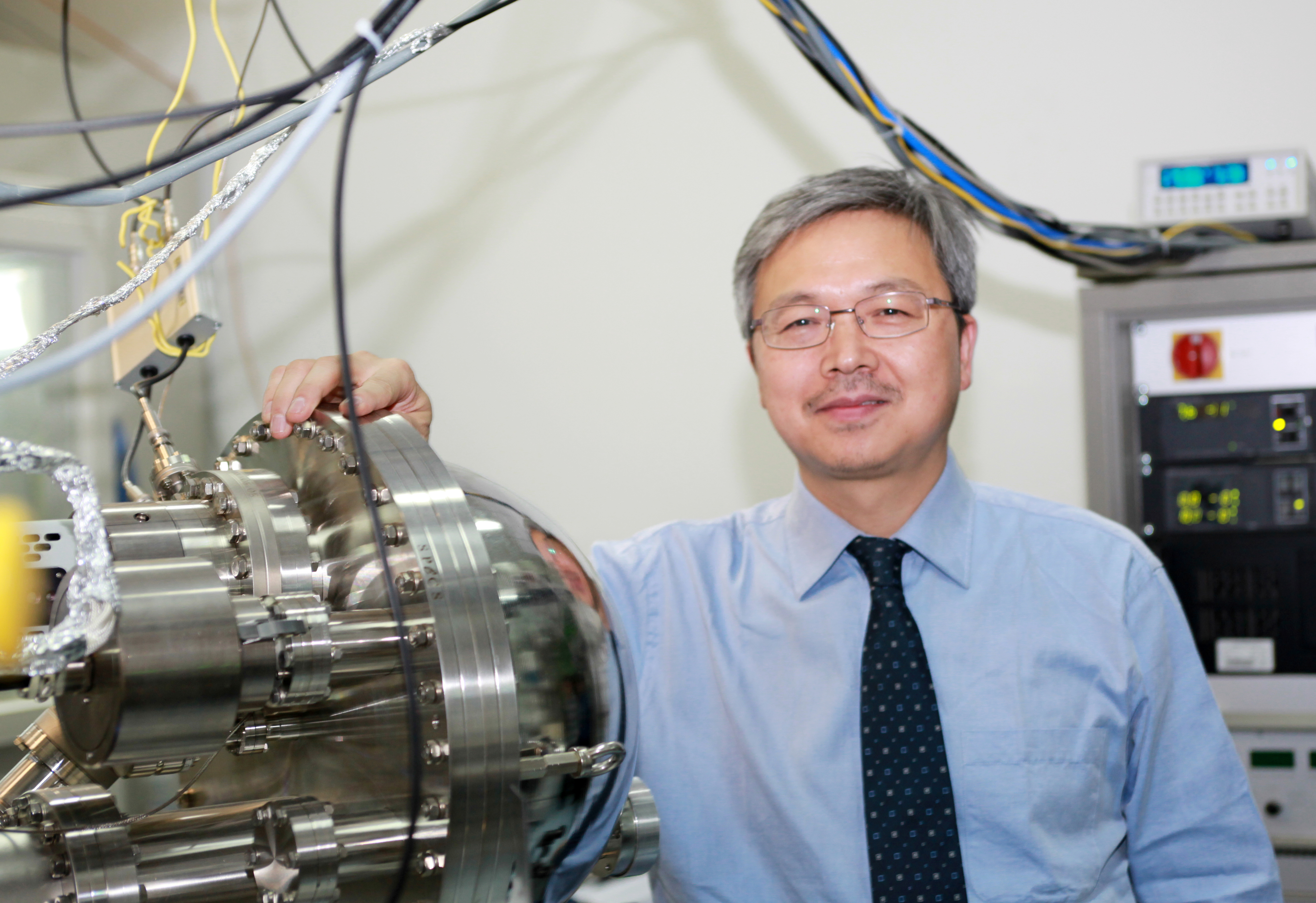 杨学明在交叉分子束仪器旁边。中科院大连化物所供图
