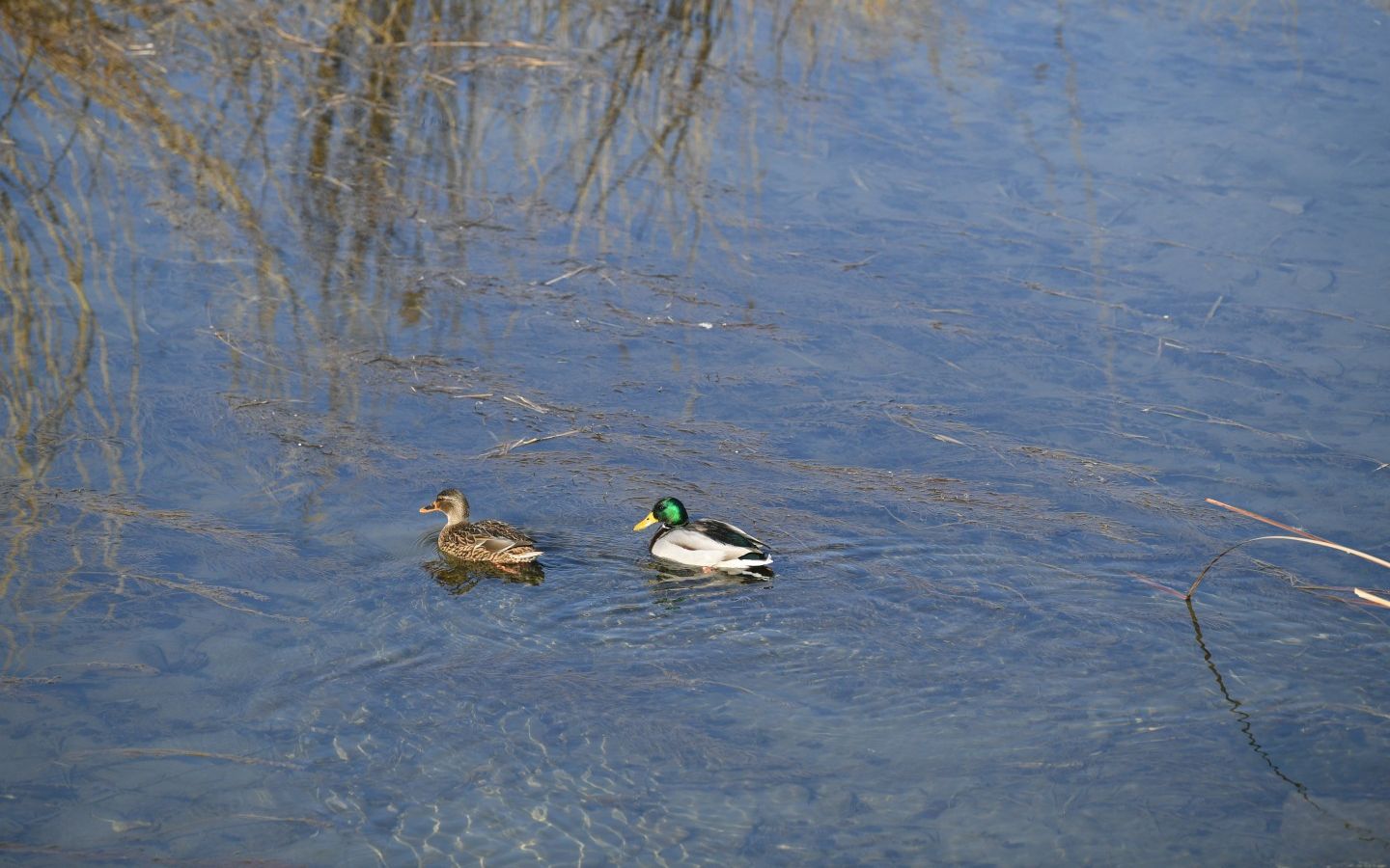 永定河上嬉戏的野鸭。新京报记者 王颖 摄