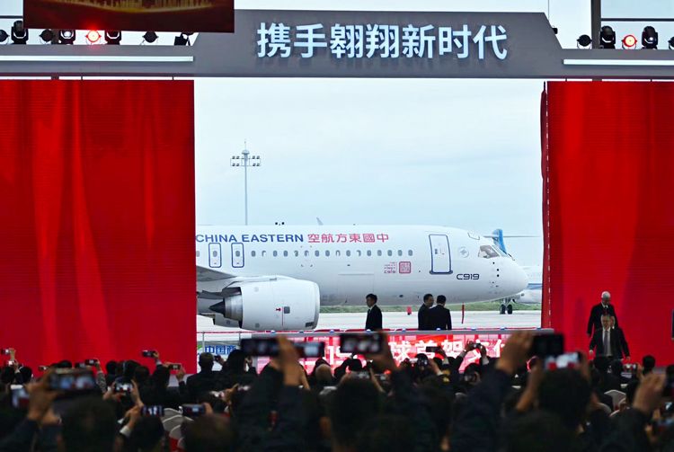 交付仪式以“携手翱翔新时代”为主题。这是我国大飞机事业发展的又一重大里程碑。意味着三十多年来,全球民航运输市场将迎来最新一款全新研制的单通道干线飞机。
