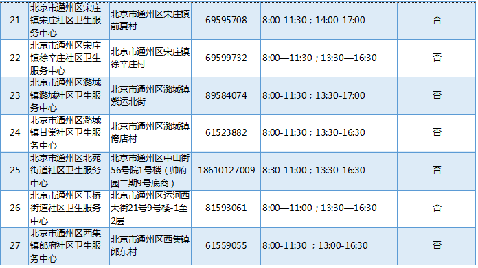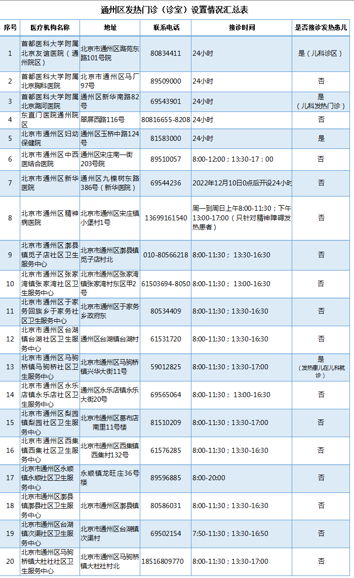 北京通州区发热门诊医疗机构名单公布,共27家