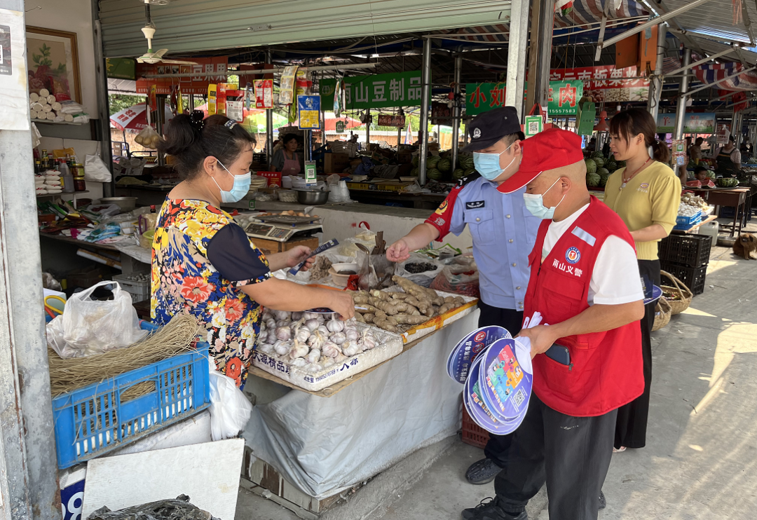 安民派出所民警深入农贸市场向群众开展反诈宣传。 图源:安徽省马鞍山市公安局雨山分局