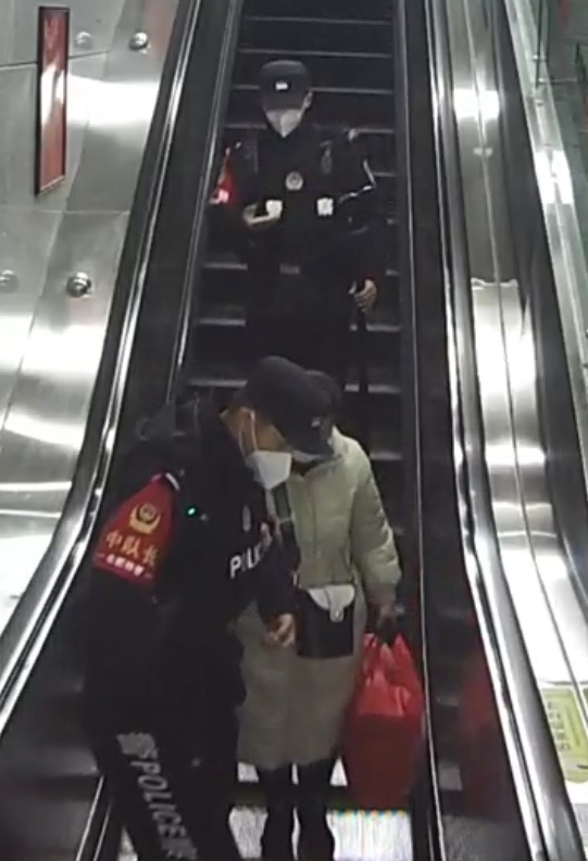 “现在要上台阶了,慢一点。”民警王文清让这名女乘客挽着自己的手臂,不停提醒她注意脚下。4分钟后,王文清带着这位女乘客到达地铁安检口。通过安检后,一位热心的站内工作人员迎了上来,接过女乘客的行李,带着她向上车的位置慢慢走去。