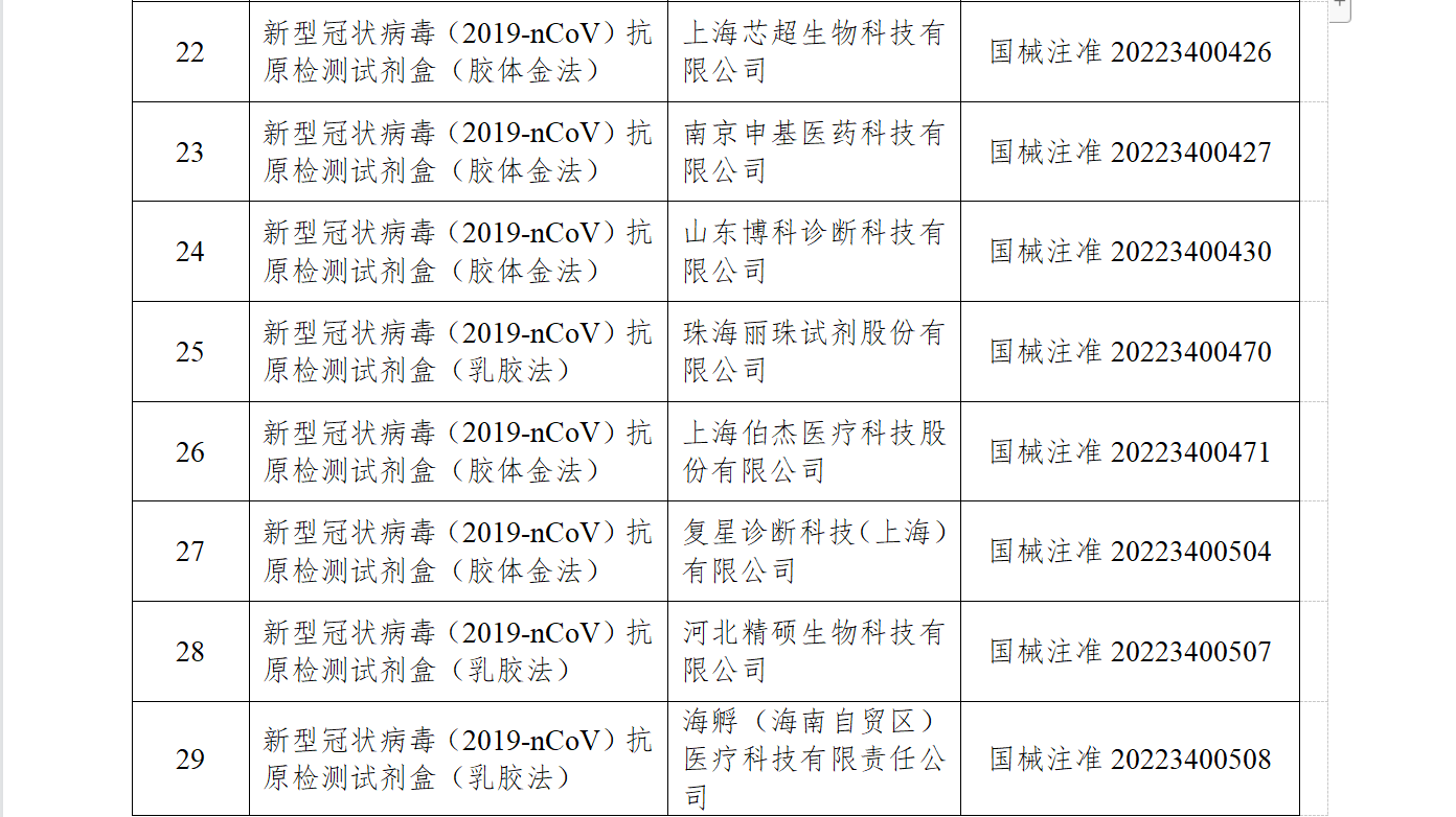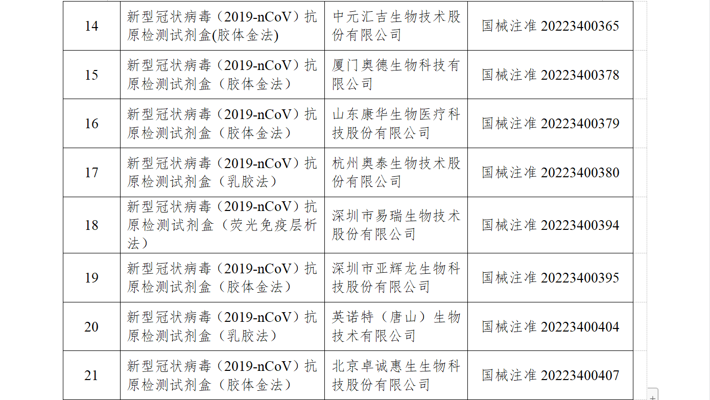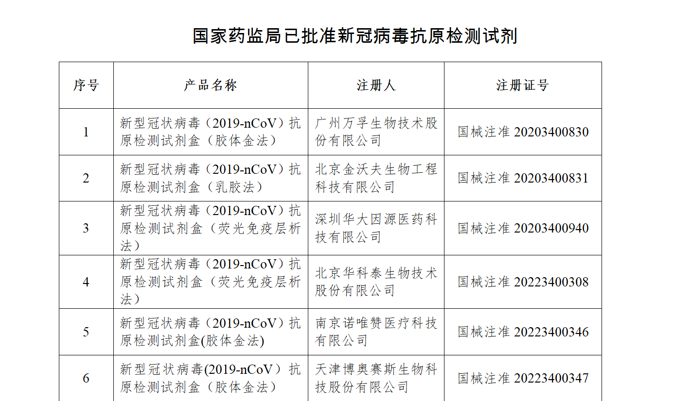 国家药监局已批准40个新冠病毒抗原检测试剂产品