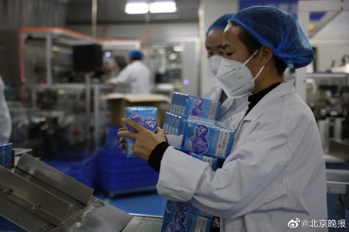 “从11月初开始,我们的生产线就进入24小时不停工的状态,工人三班倒,全力保障药品生产。”北京春风药业生产副总兼生产负责人周强强告诉记者,公司除了这条全自动生产线外还有人工包装线、半自动包装线等,每条生产线包装的产品类型都不相同。目前,春风药业生产的防疫药品主要是双黄连颗粒、银丹解毒颗粒等,双黄连颗粒一天可生产约30万袋、5万盒左右,面向北京所有医疗机构、药店供应;银丹解毒颗粒每天可生产约12万袋,主要供应新冠肺炎定点治疗医院和全市所有有需求的医疗机构调剂使用。