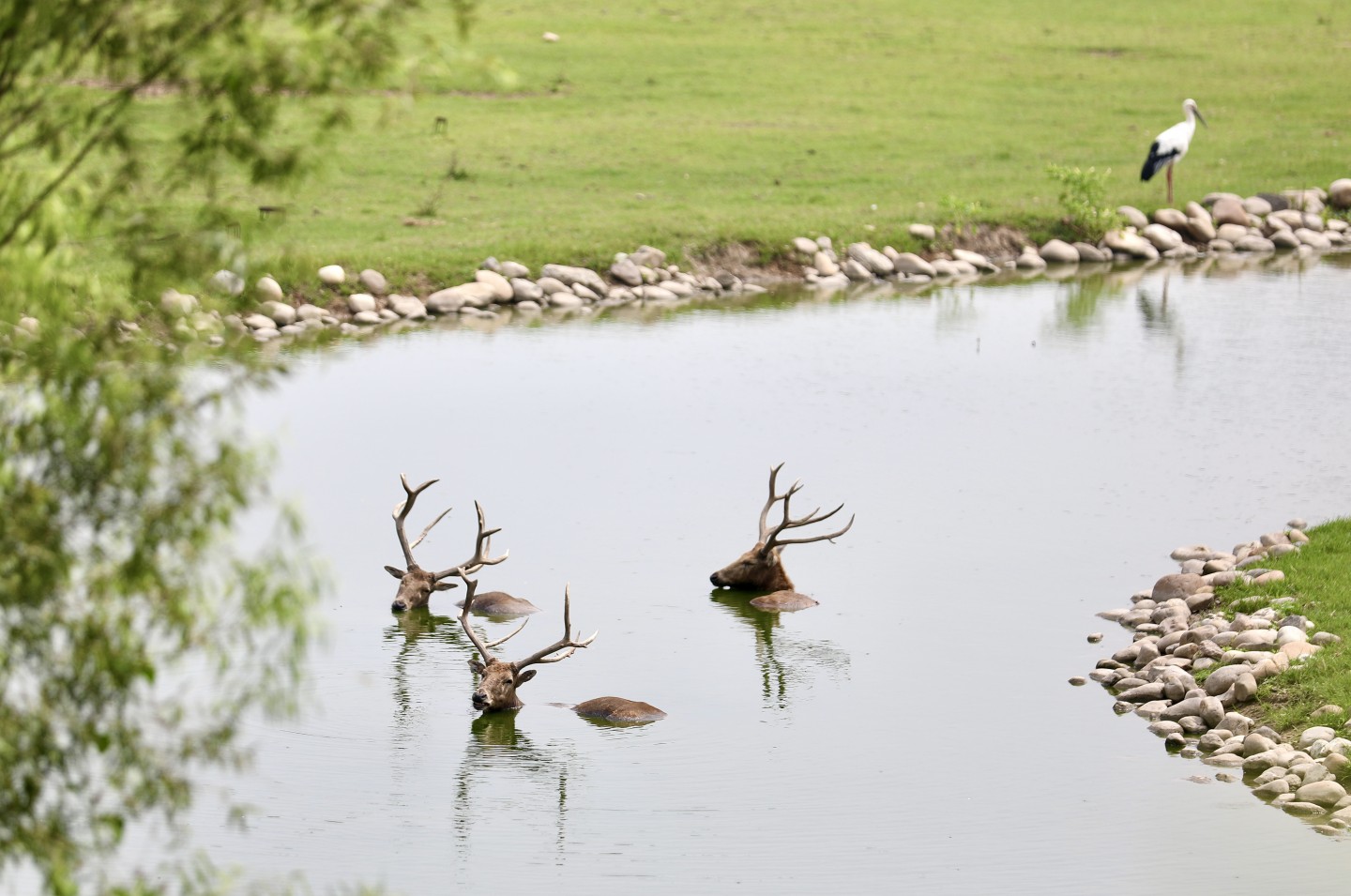 另一个问题是难产率。钟震宇说,麋鹿的难产率比其他鹿类高,在此前的记录中达到6%。研究人员查阅以往欧洲动物园和北京动物园的资料发现,生活空间小、经常被人干扰的环境不利于麋鹿生育。在麋鹿苑,他们不仅留出了宽敞空间活动,也营造出生物多样性丰富的湿地环境。