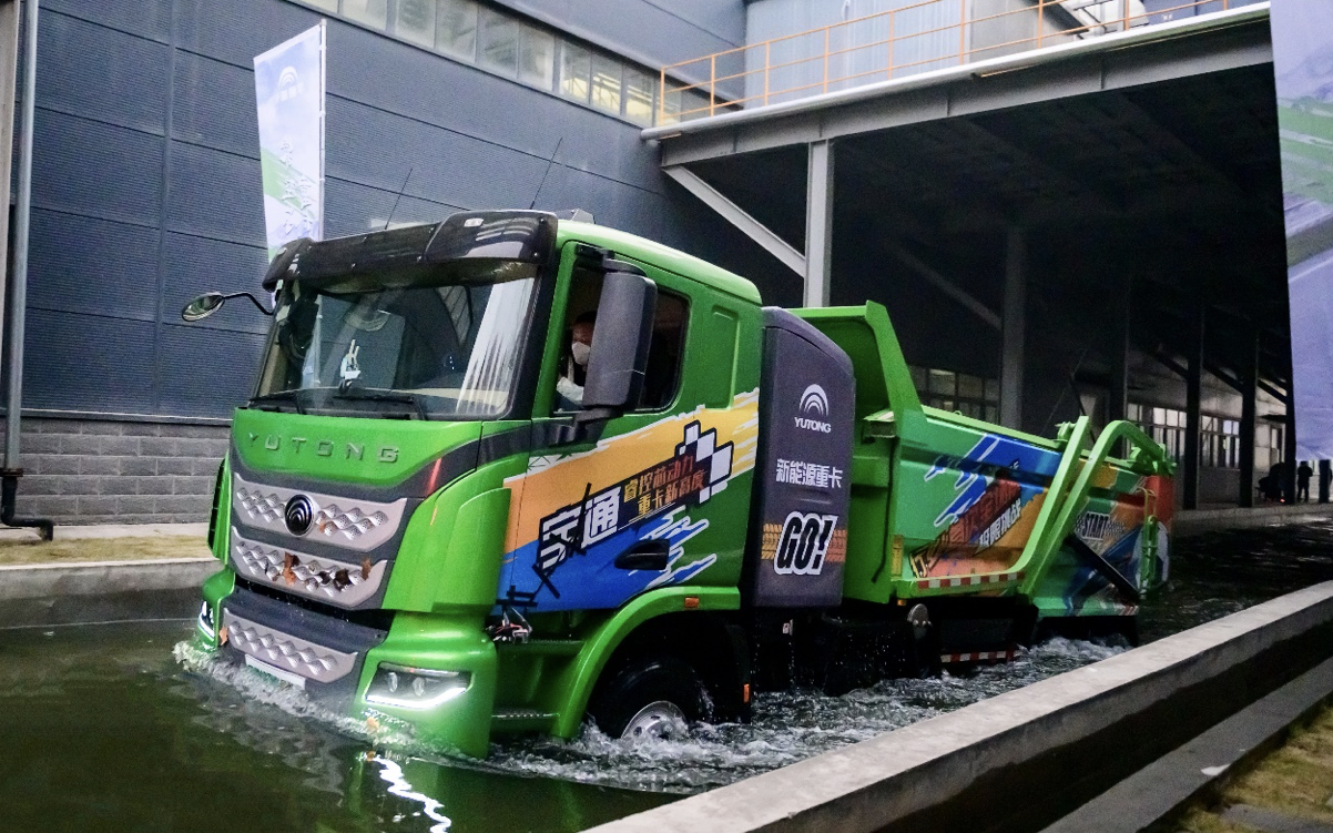 宇通新能源重卡涉水挑战。图/车企官网