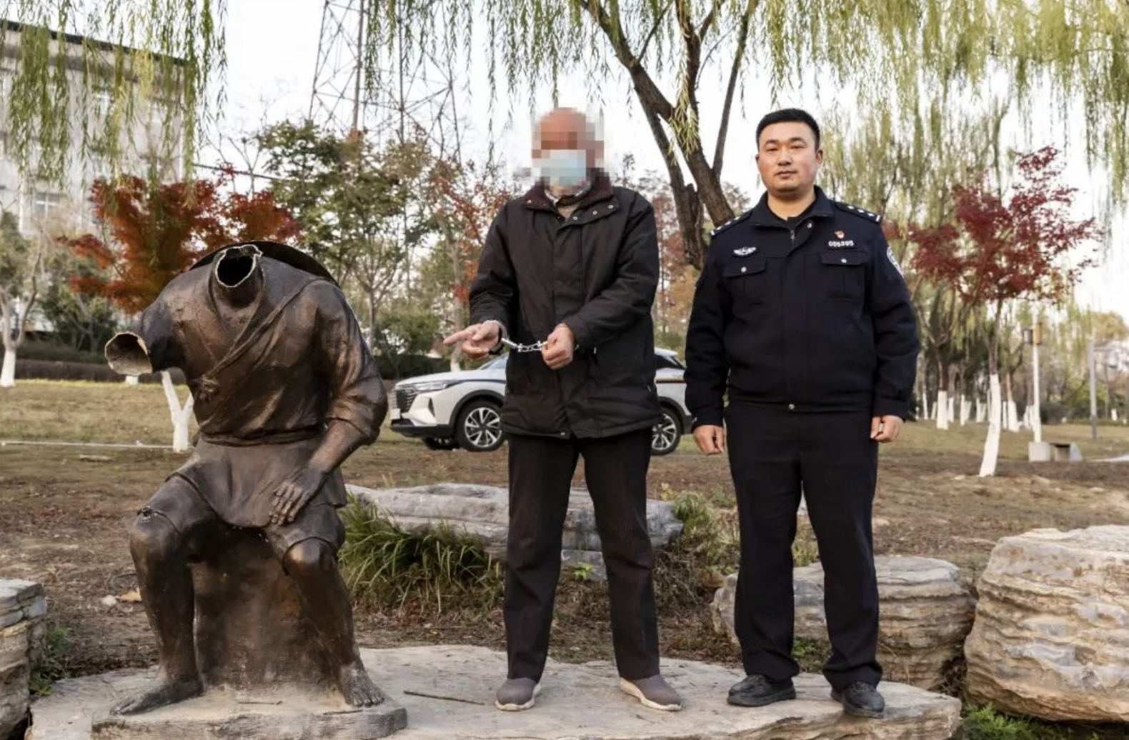 老人切割公园铜像卖出获利,湖北警方:已抓获盗取者和收购者