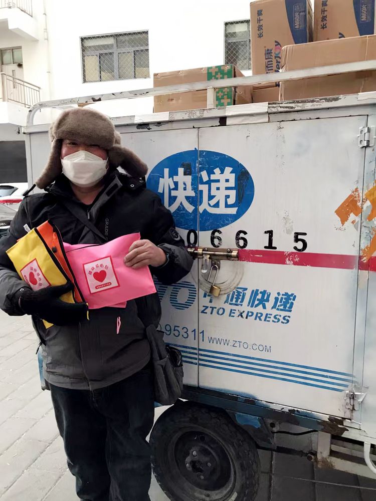 12月14日,快递员收到健康防疫包,十分开心。