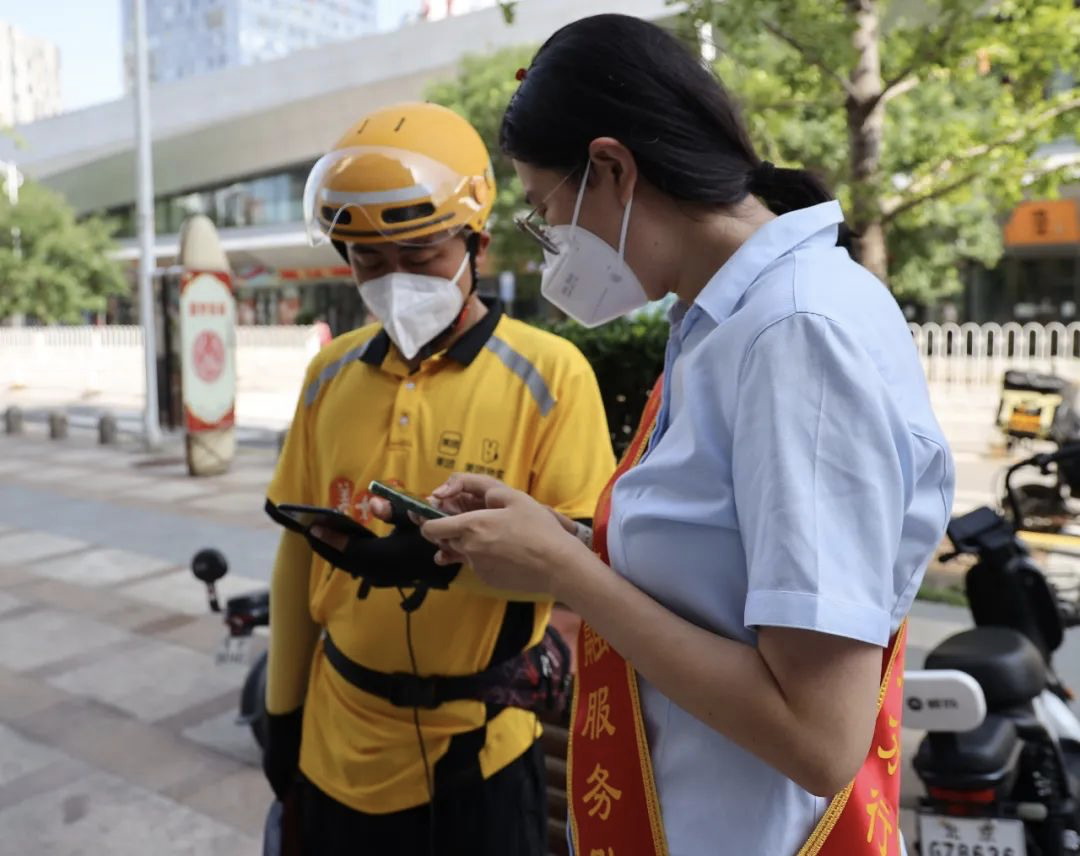 建行北京通州分行志愿者指导外卖小哥领取“安疫保”