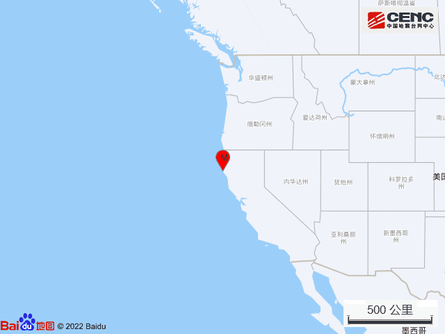 新京报讯 据中国地震台网正式测定,北京时间12月20日18时34分(当地时间12月20日2时34分)在美国加利福尼亚州沿岸近海发生6.3级地震,震源深度10千米,震中位于北纬40.60度,西经124.40度。