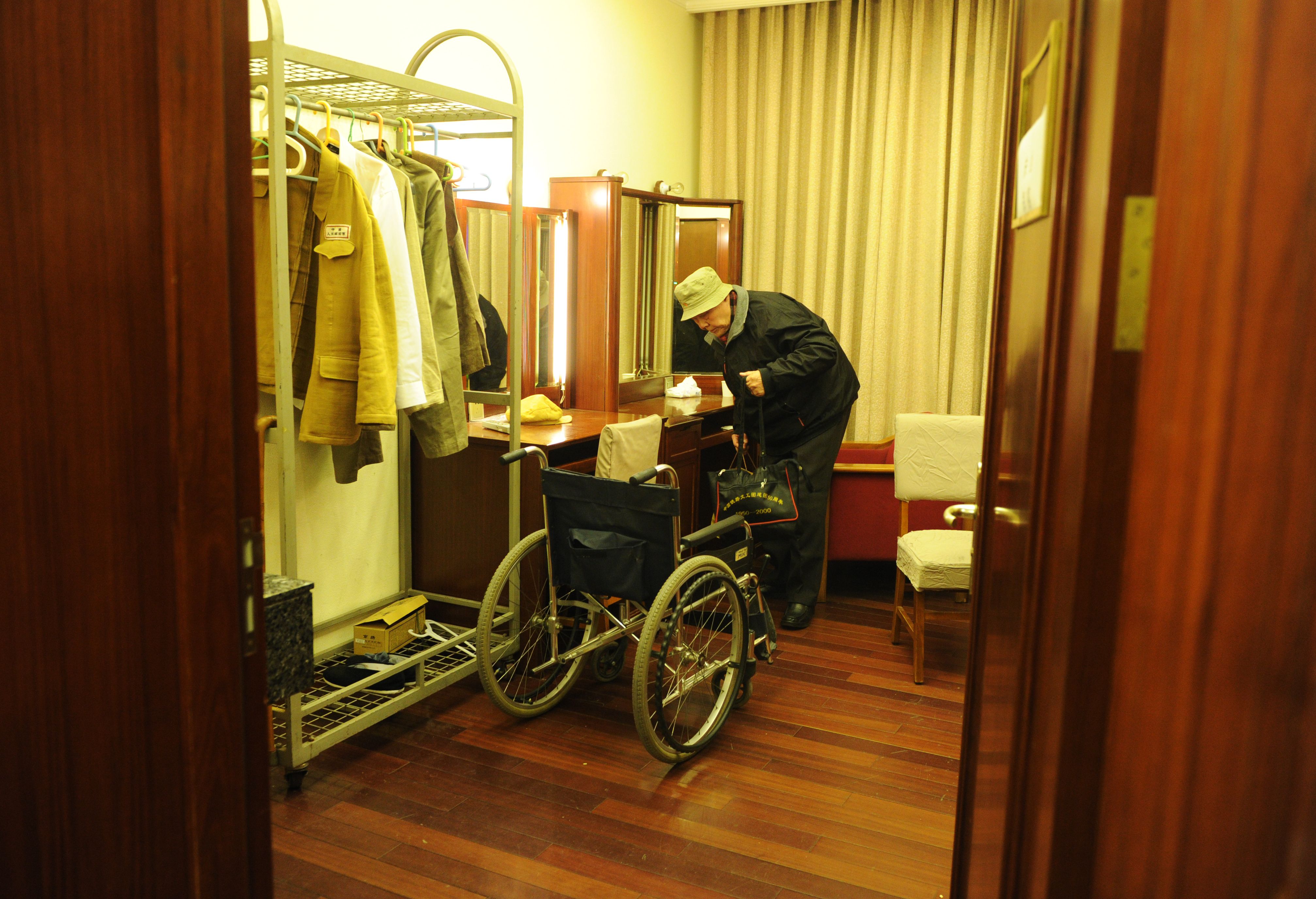 2012年10月20日,北京,话剧《甲子园》演出结束,郑榕准备离开剧院。