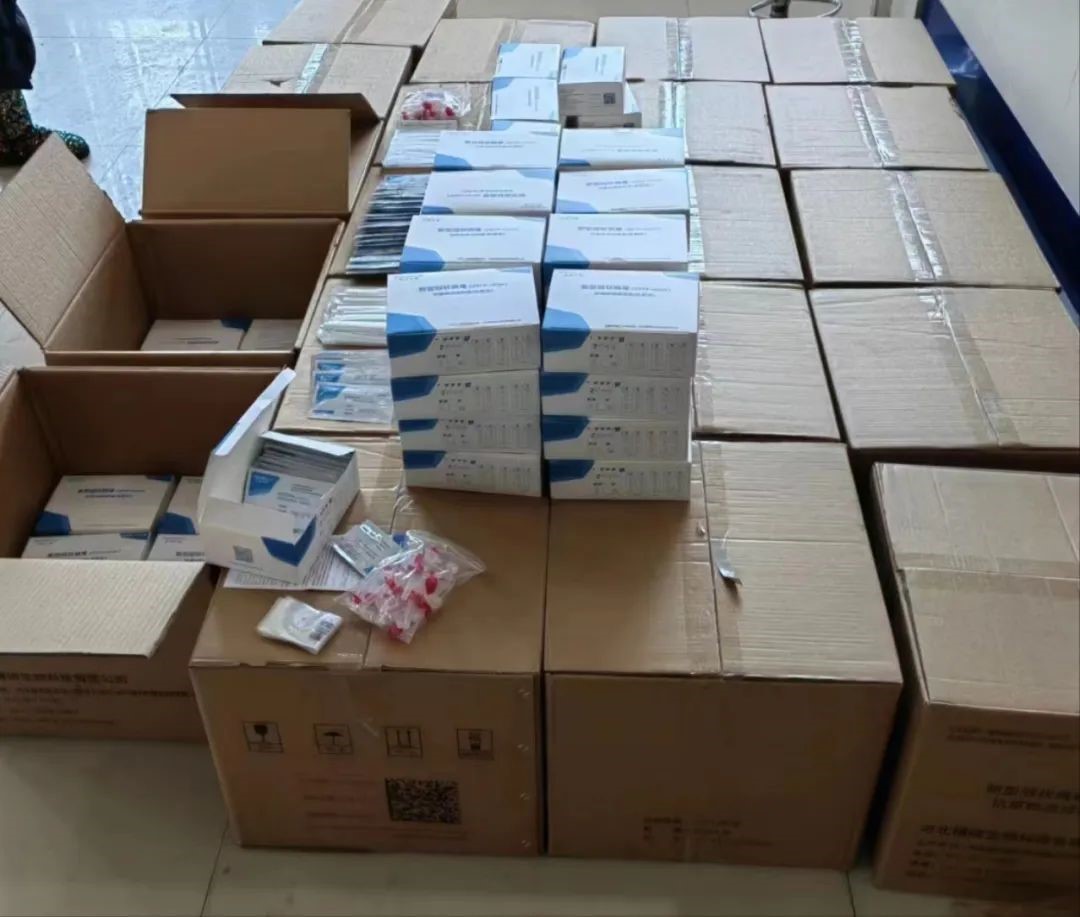 民警查获的抗原试剂盒。 图源:哈尔滨市公安局