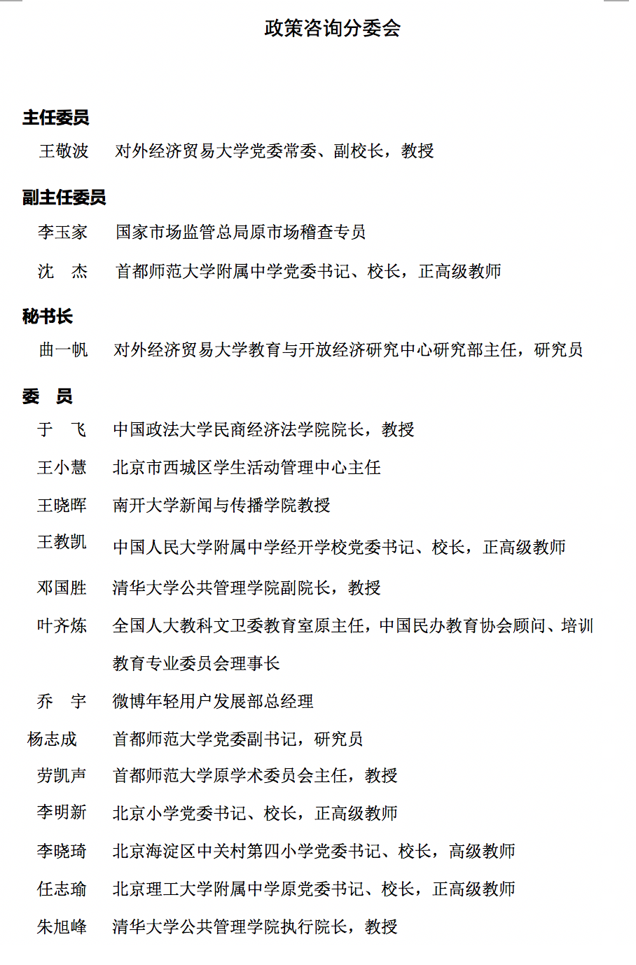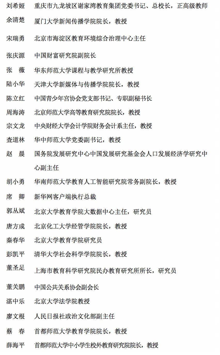 教育部公示全国校外教育培训监管专家委员会成员名单