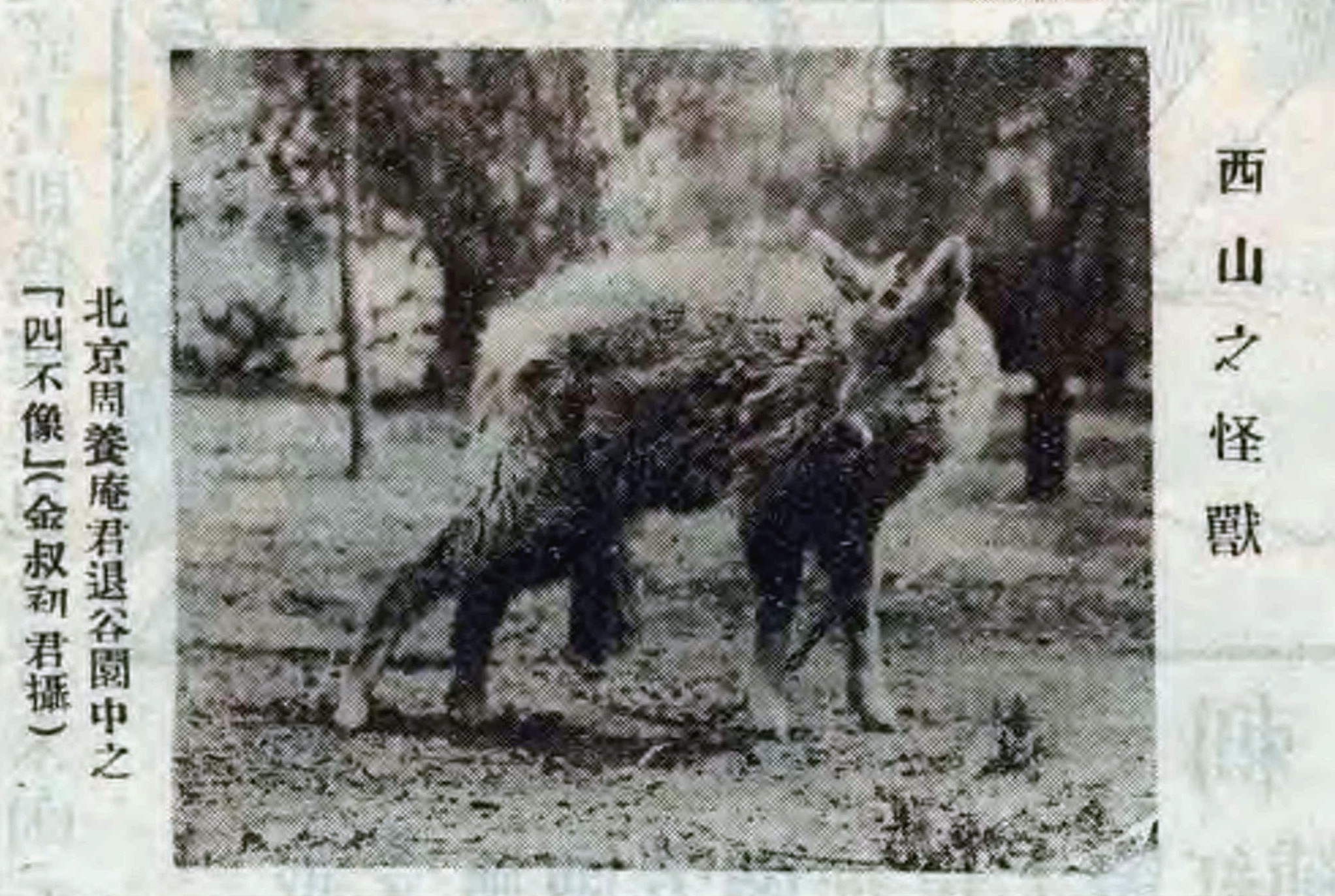 1926年,《图画时报》上刊登的中华斑羚幼体照片,名曰“西山之怪兽”。国家植物园(北园)供图