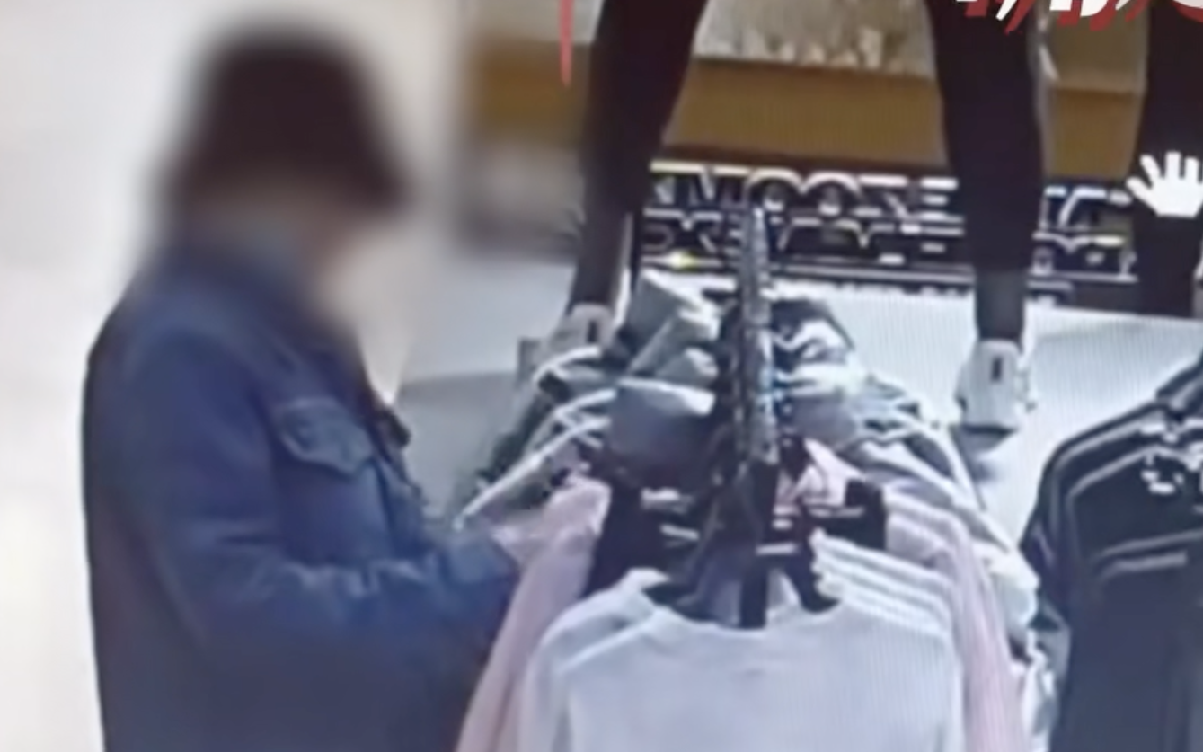 监控画面显示,店内新品上架人流量较大。这名女子佯装试衣服,在店内不停的挑挑拣拣。她四处张望,发现没人注意时,拿起一件粉色上衣,迅速离开了店铺。