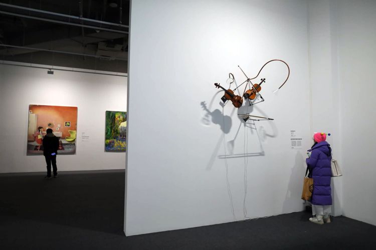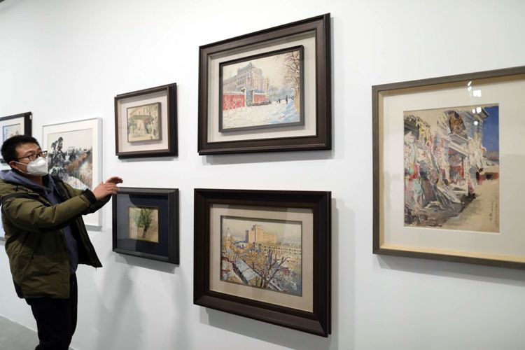 12月30日,国家对外文化贸易基地(北京),嘉宾观看展览。在为期三个月的时间里,七大展览将在三个展区相继开启。除国家对外文化贸易基地(北京)外,北京友谊商店、木木美术馆钱粮胡同馆两个分会场也将于近期开启展览单元。