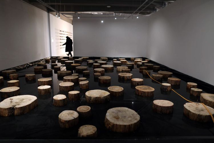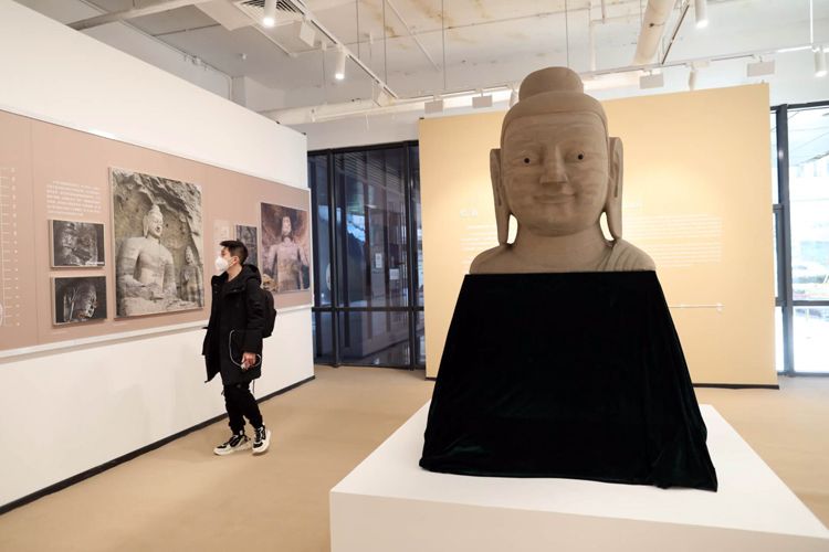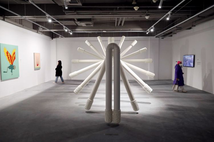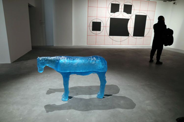 12月30日,国家对外文化贸易基地(北京),艺术家马蒂.布豪恩作品《迷失的未来》。2022首届北京艺术双年展期间,“唤醒石头里存在的生命”“无尽的交谈”和“可见的浪漫:与北京有关的记忆与想象”三个主展单元在国家对外文化贸易基地(北京)展出。