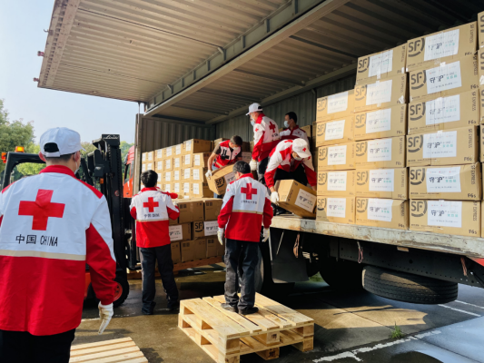 中国红十字基金会捐赠“守 ‘沪’家庭箱”支援上海抗疫。中国红十字基金会供图
