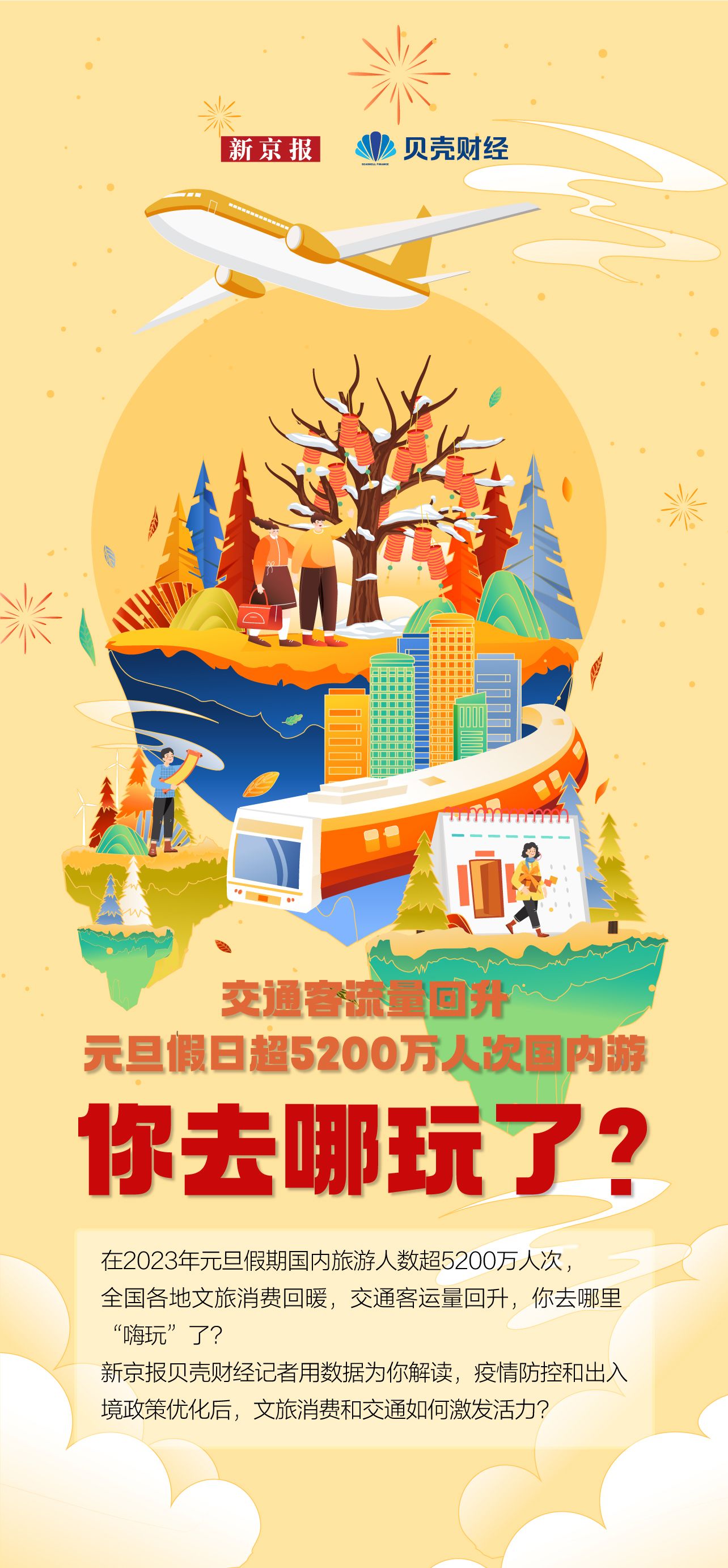 在2023年元旦假期,国内旅游人数超5200万人次,全国各地文旅消费回暖,交通客运量回升,你去哪里“嗨玩”了?
