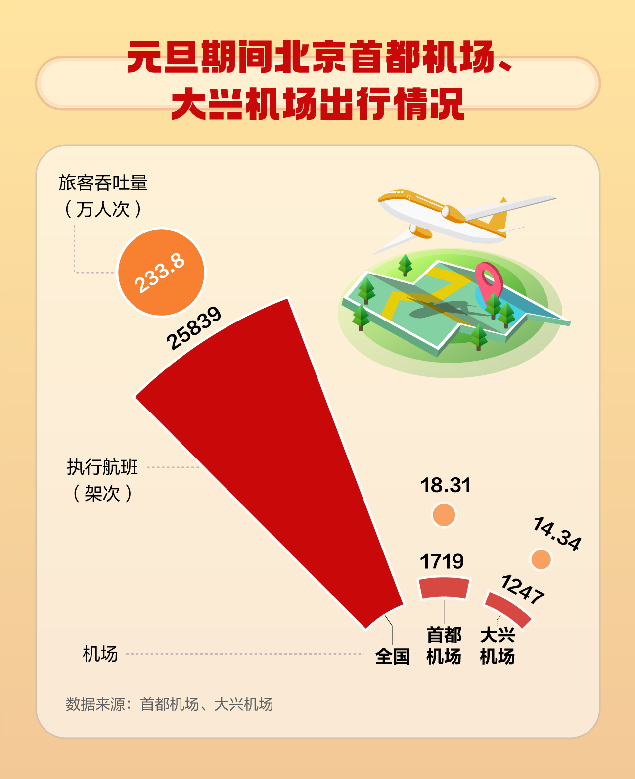 北京首都机场数据显示,元旦假期,首都机场共执行航班1719架次,完成旅客吞吐量18.31万人次。大兴机场共执行航班1247架次,完成旅客吞吐量14.34万人次。