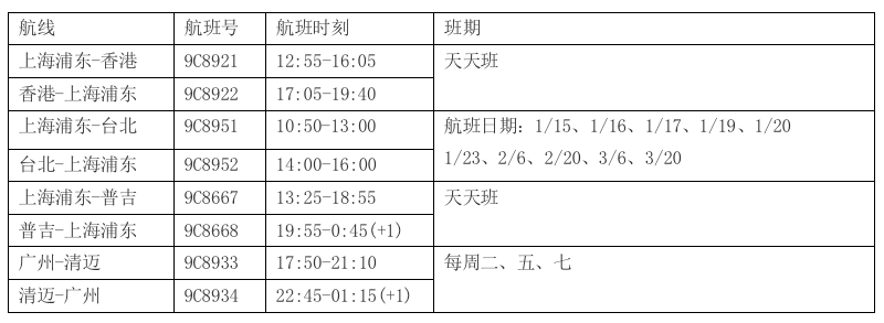 春秋航空1月份新增恢复航班具体信息。图/春秋航空供图