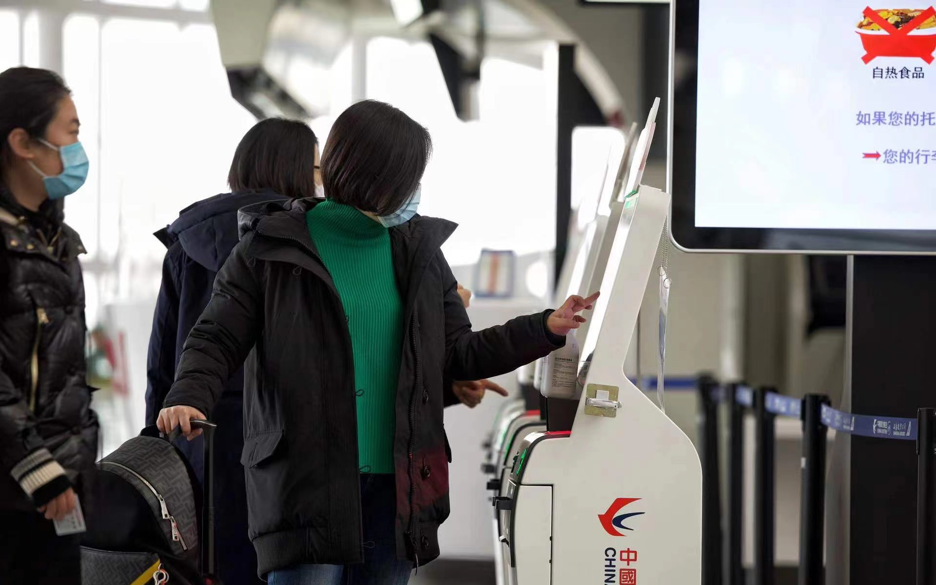 1月7日春运首日,旅客在大兴机场办理值机手续。新京报记者 陶冉 摄