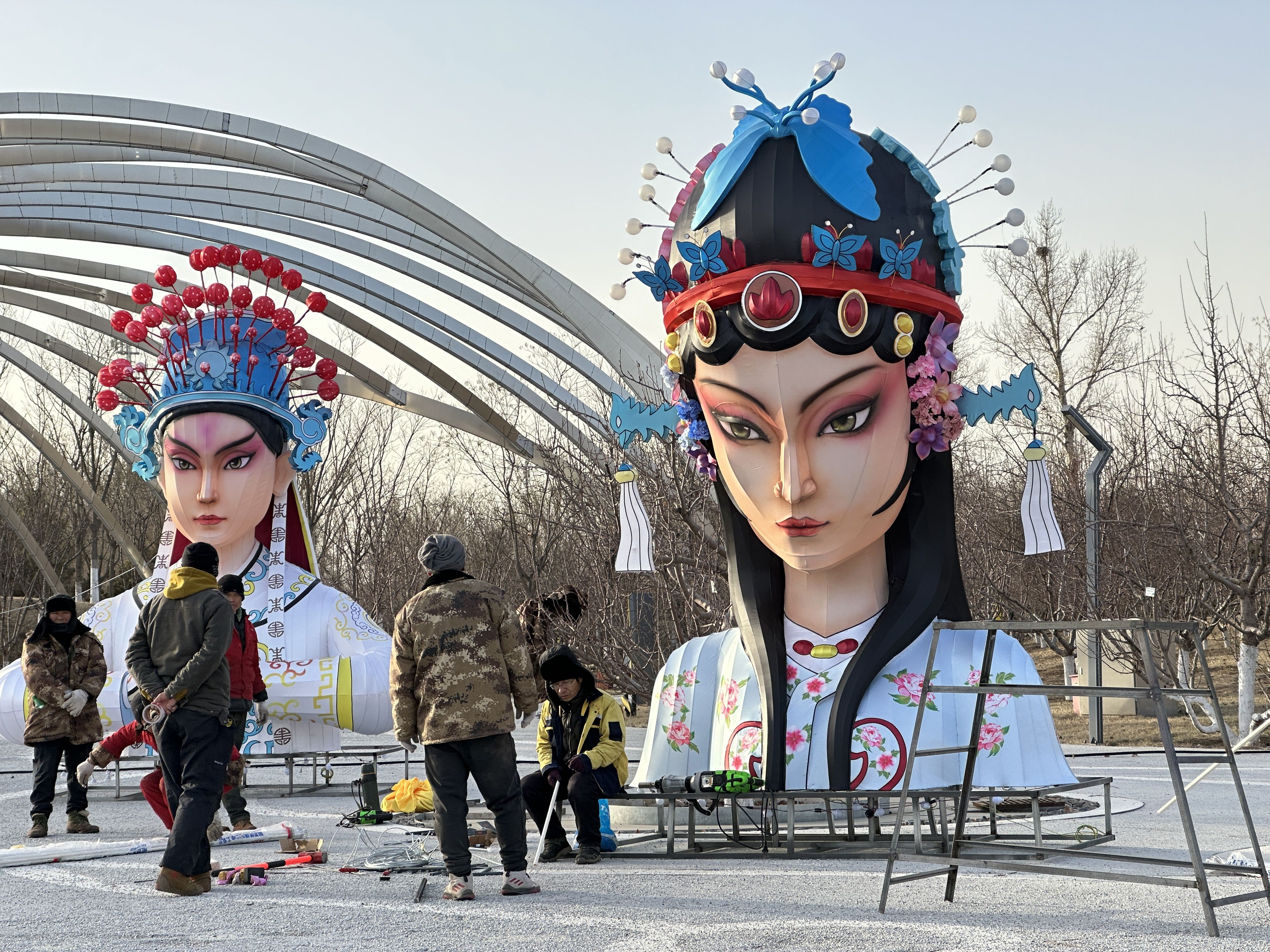 新京报讯(记者曹晶瑞 王巍)2023年1月15日,北京世园公园占地面积30万平方米的170组自贡花灯将正式点亮,长达3000米的游览路线将让市民身临其境感受到拥有近千年历史的自贡花灯的魅力。日前,新京报记者前往北京世园公园进行探访,来自四川自贡的260余位花灯师傅正在对花灯进行最后的组装调试。