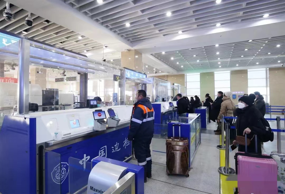中蒙边境二连浩特口岸旅客通道开关,当地翘首迎接“久违的客商”