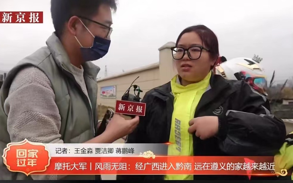 新京报此前报道,1月8日,由沫沫、吴华佳、胡大哥等五人组成的摩托车“迷你车队”从广东中山出发,目的地是吴华佳的老家贵州遵义。几个人都在广东打工,来自不同的地方,出于对摩托车的爱好结识在一起,他们决定送吴华佳回家,再各自返乡。