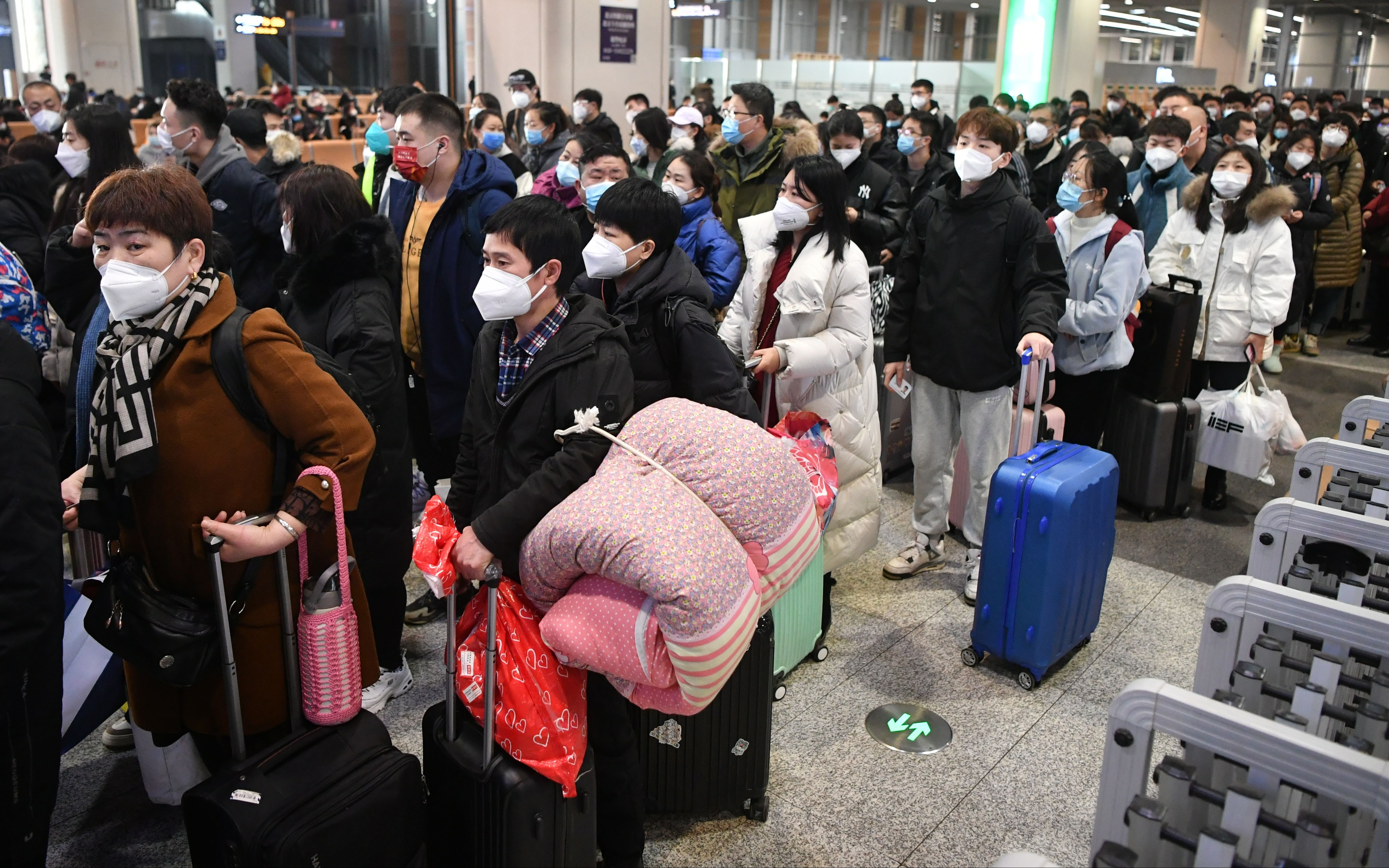 旅客在站内排队候车。新京报记者 王贵彬 摄