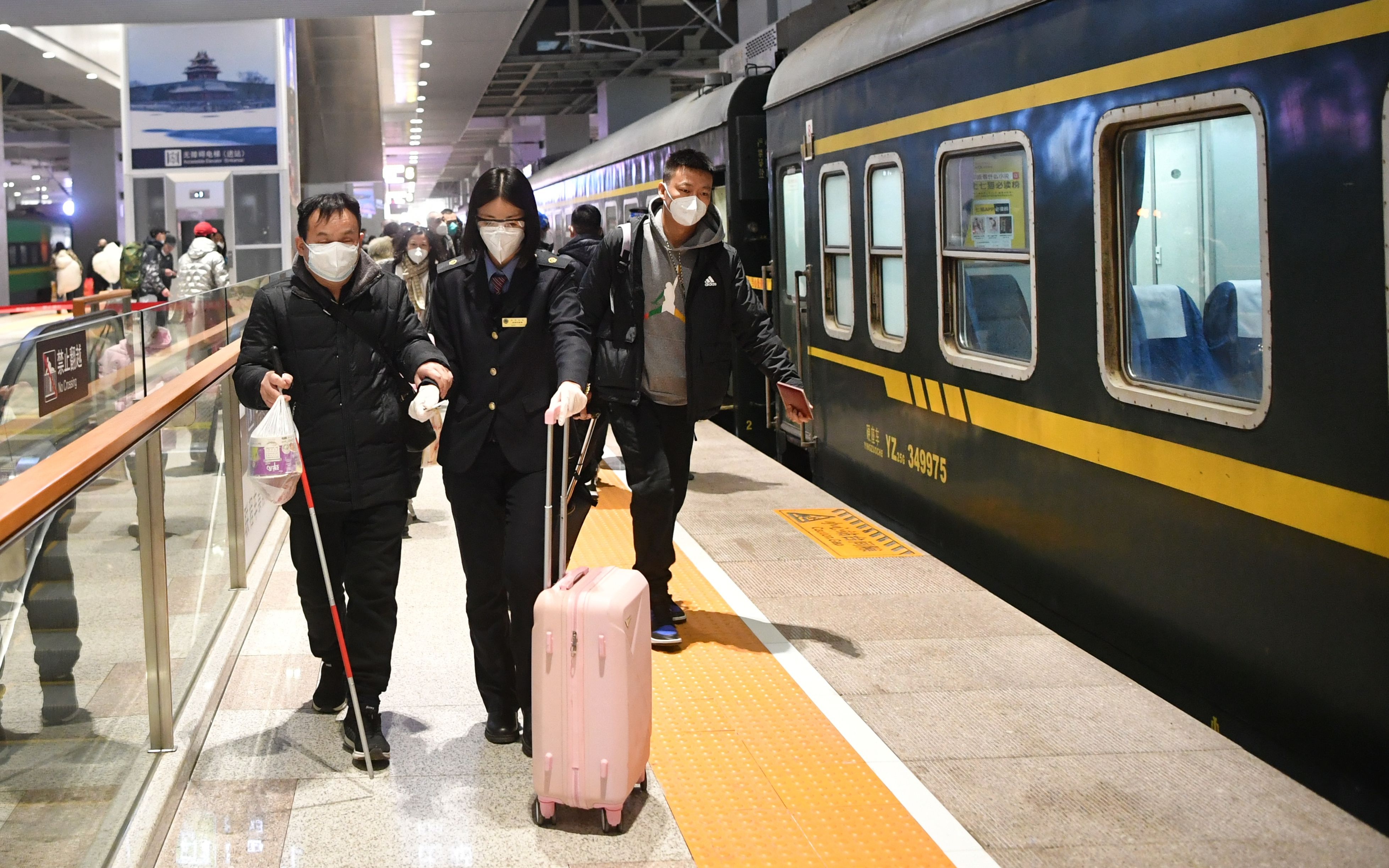 走出车厢时,王淼还不忘跟列车员再交代几句:“那个粉色的箱子是这位师傅的,您也帮忙多照看着点。”她告诉记者,现在每天要帮助这样的重点旅客进出站约五六十人次,“其中既有通过12306官方预约的,也有在车站直接找到我们的。只要是需要帮助的旅客,我们都会提供相应的服务。”