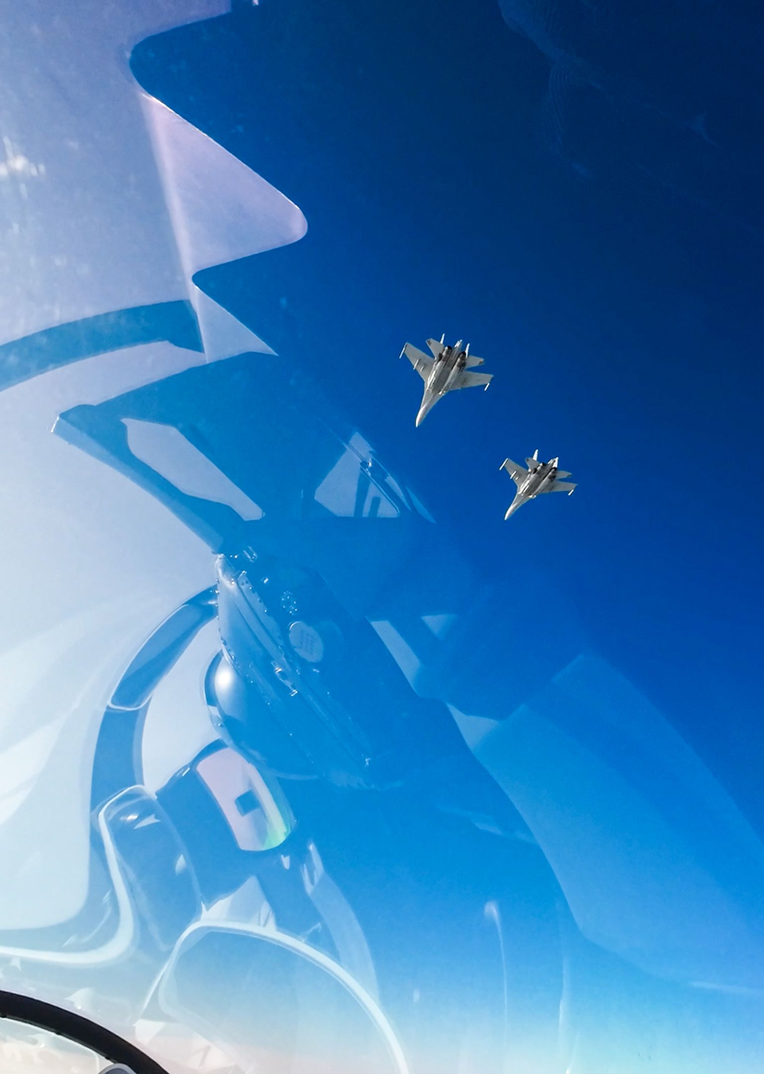 飞行员视角:战机奔向预定空域展开自由空战训练。