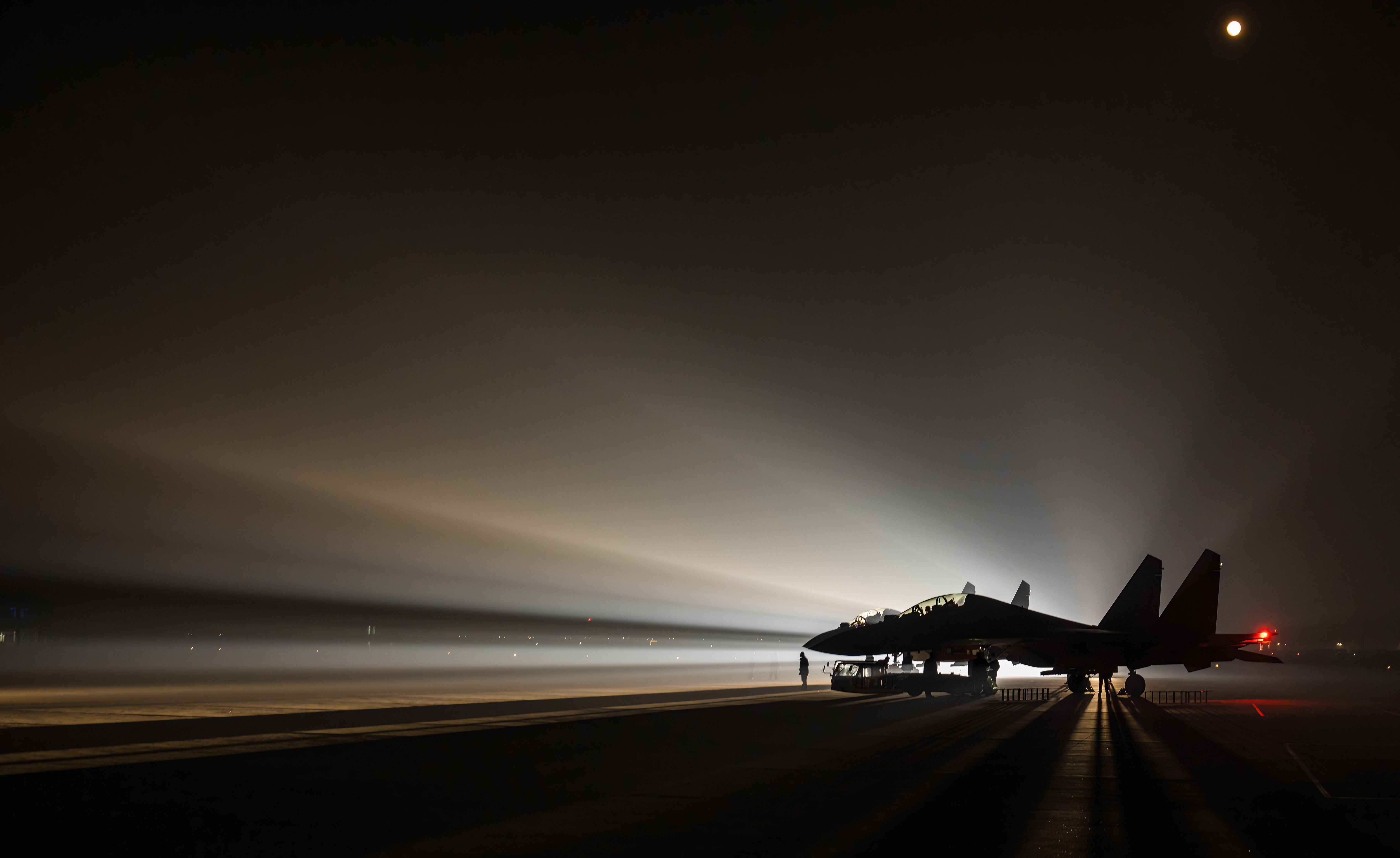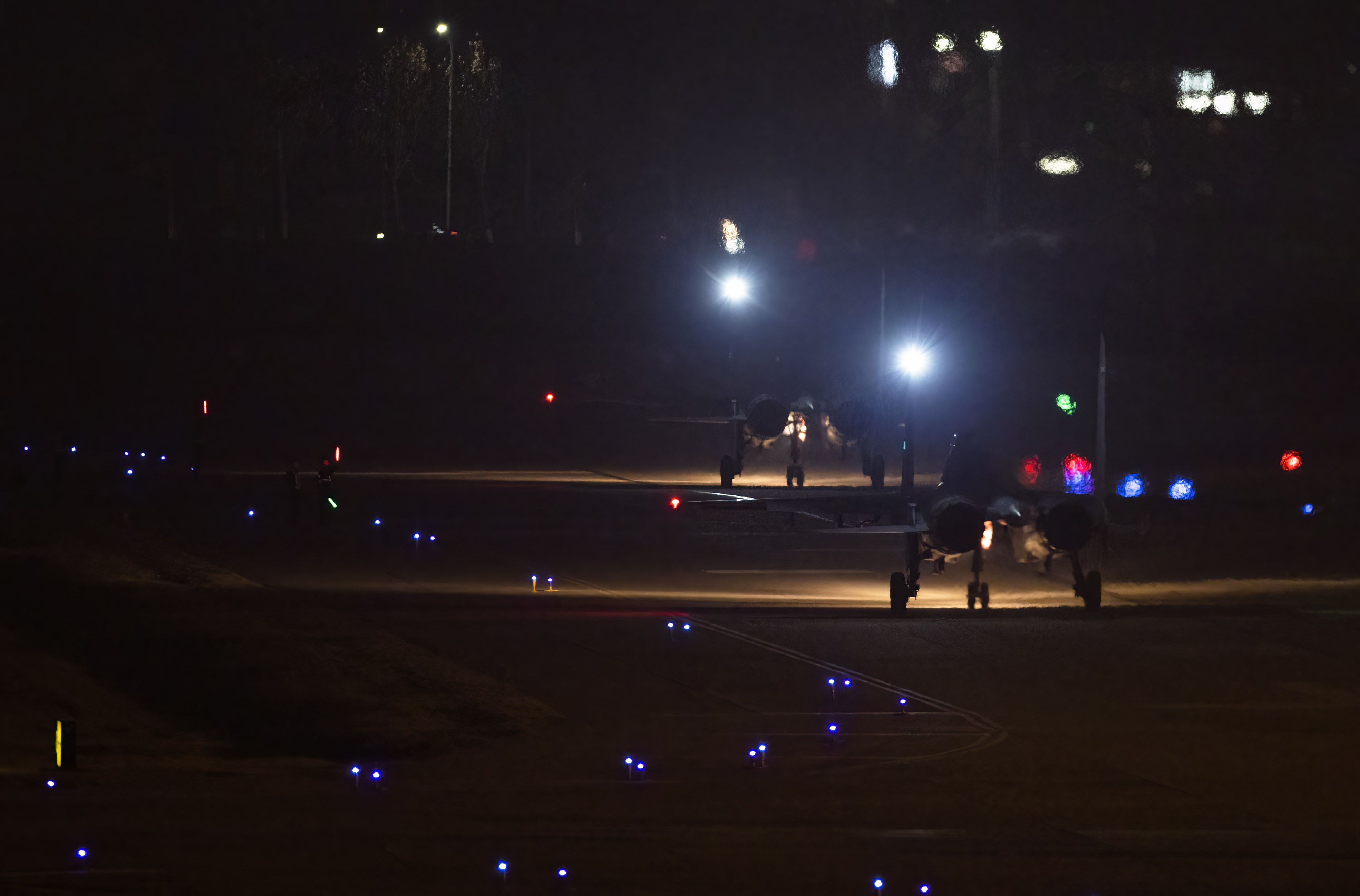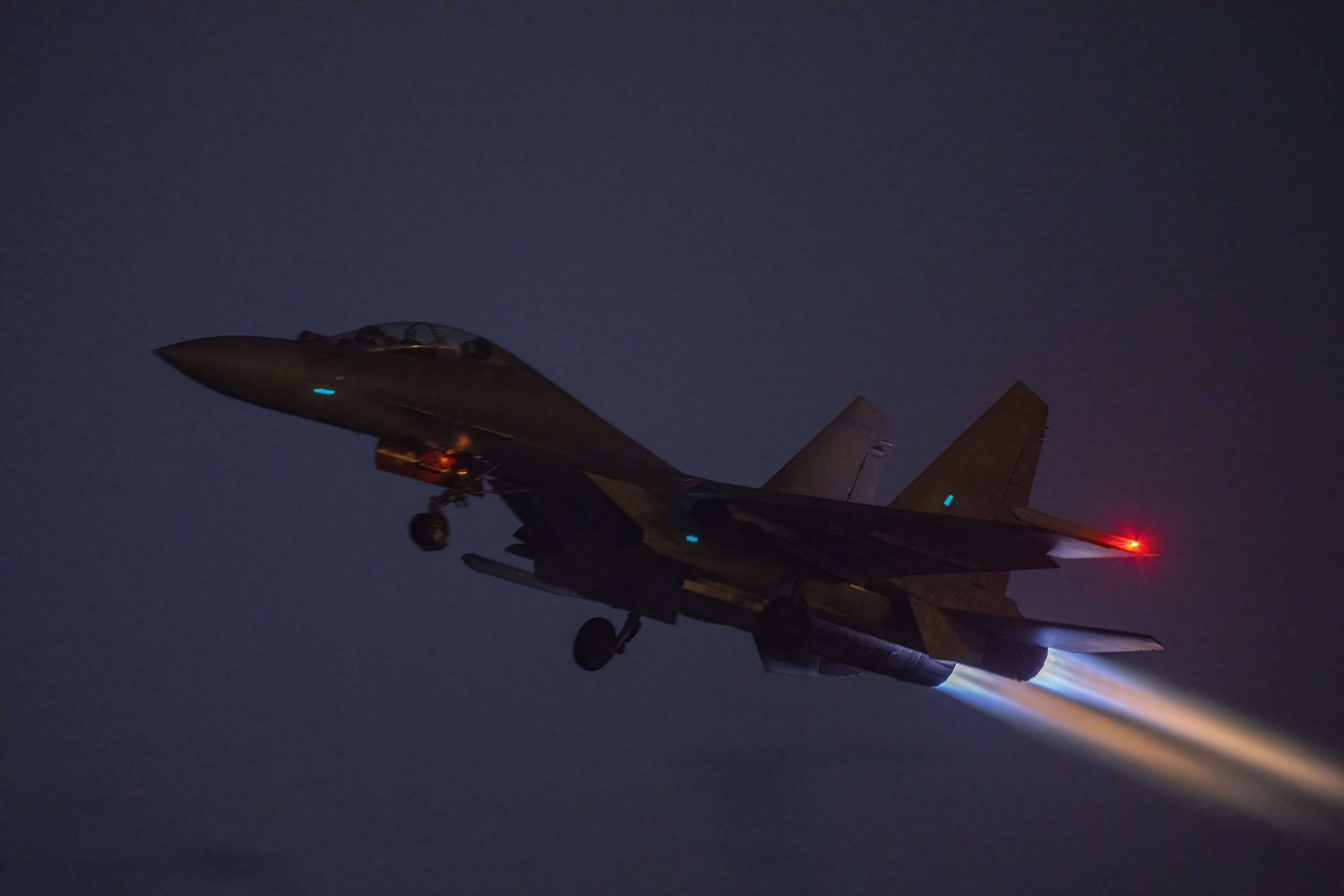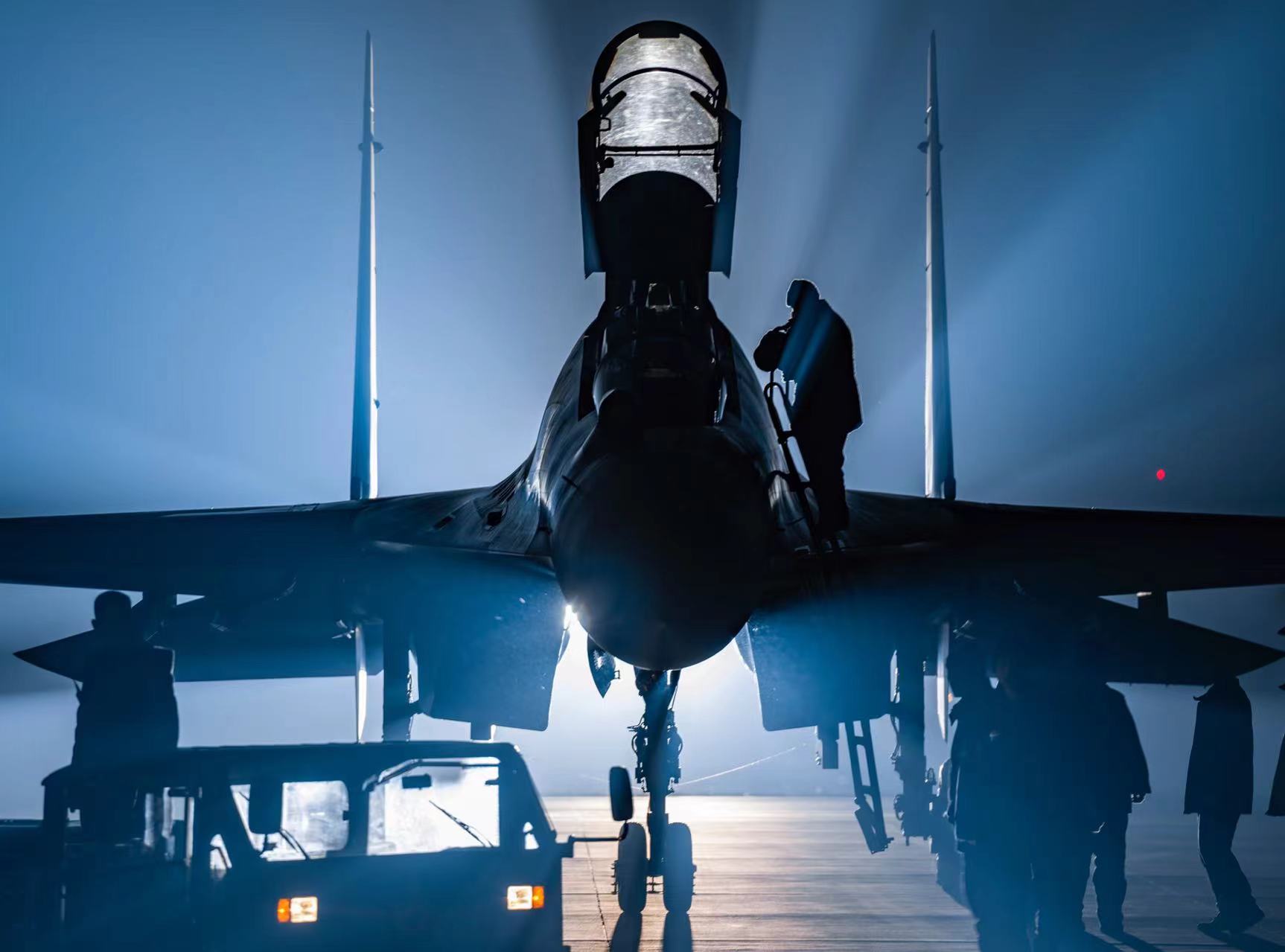 战机滑出机库准备进行夜航训练。