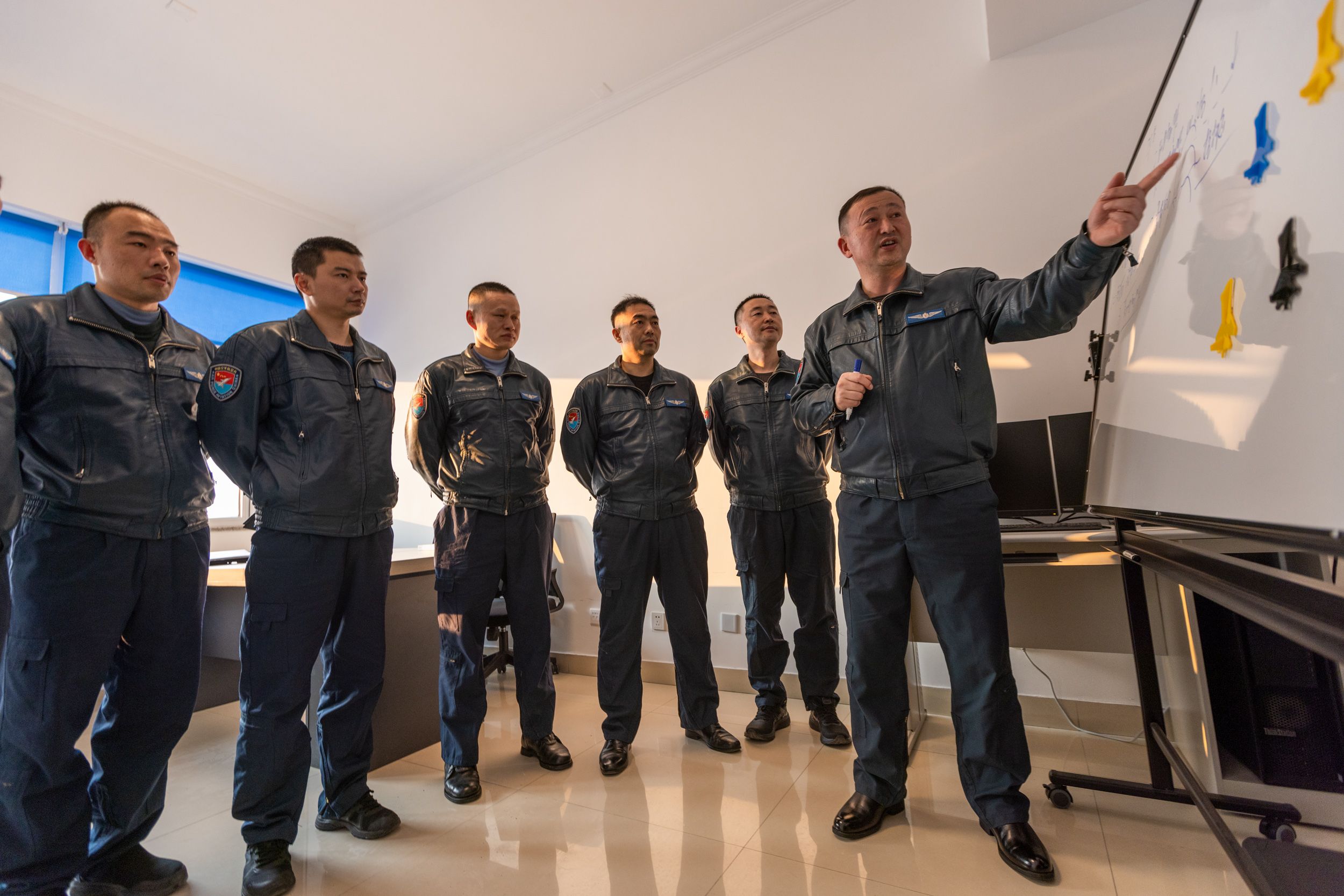 完成飞行,飞行教官对空中态势进行复盘