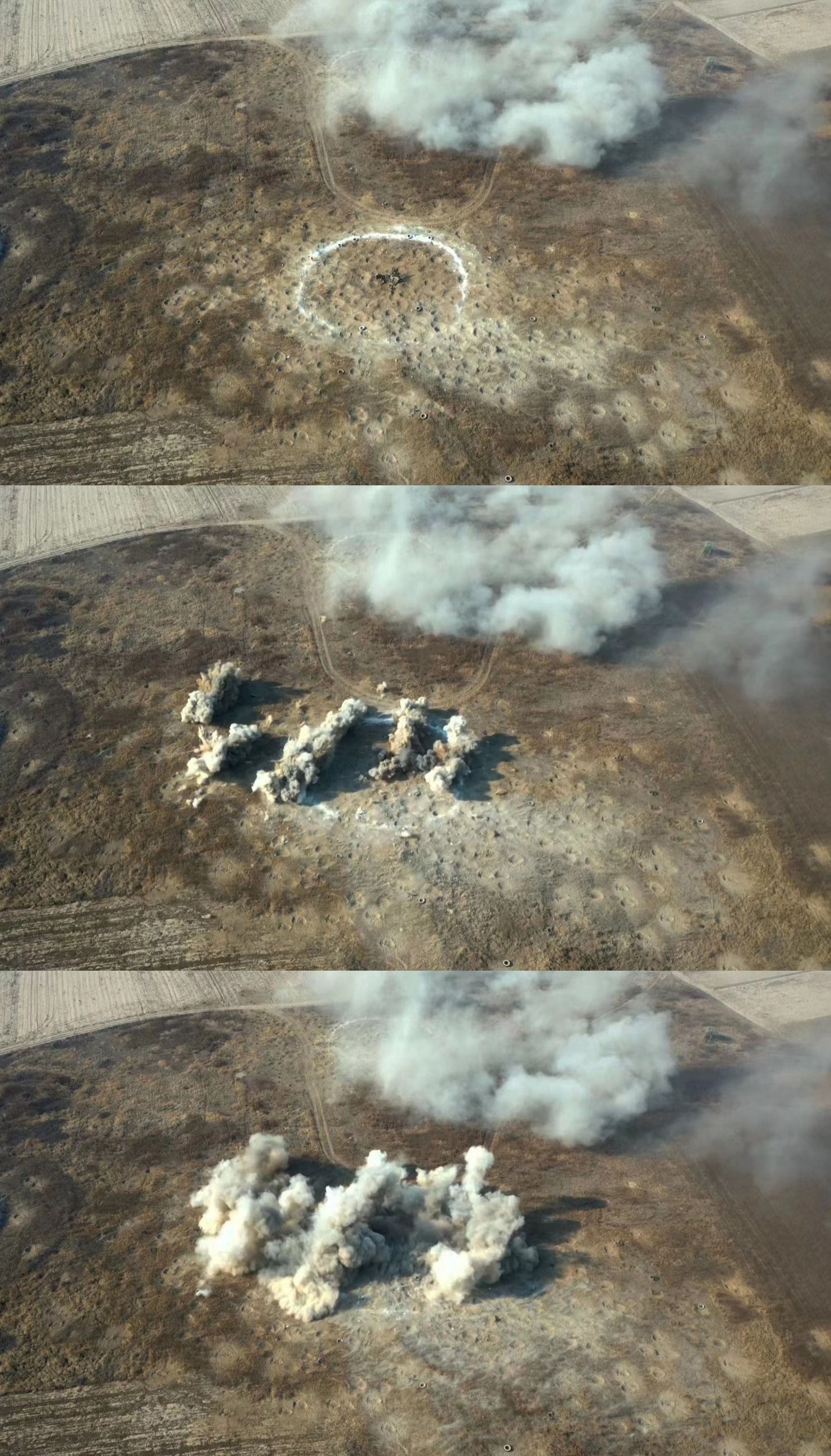 战机进行实弹打靶射击训练,精准击中目标。